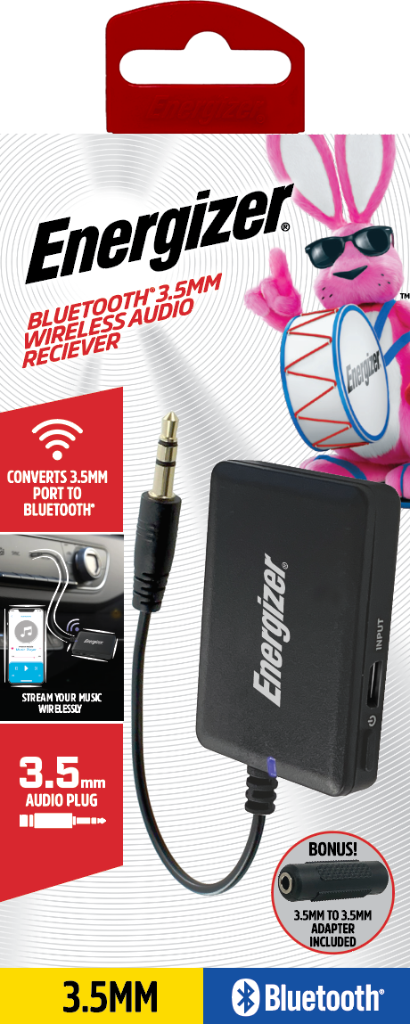 Upgrade your car or home stereo with the Energizer 3.5mm Bluetooth Wireless Audio Receiver. Simply plug it into any 3.5mm AUX input and stream music wirelessly from any Bluetooth-enabled device. With a wireless range of up to 33 feet, enjoy crystal-clear audio without the hassle of cords. Effortless, versatile, and compatible with all your favorite devices.Specifications