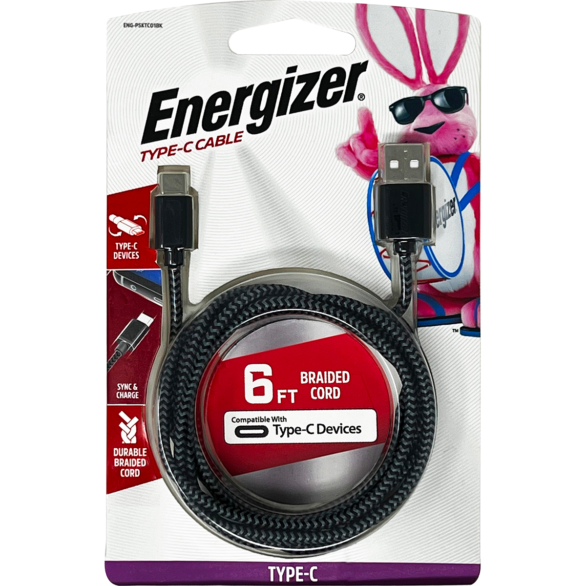 Energizer’s 6ft Braided Type-C USB Cable is more than up to the task. It’ll not only charge your Type-C smartphone or tablet, but also let you transfer files and sync your device. Its 6 ft. length gives you flexible placement options and its braided jacket keeps the cable both protected and looking stylish.Specifications