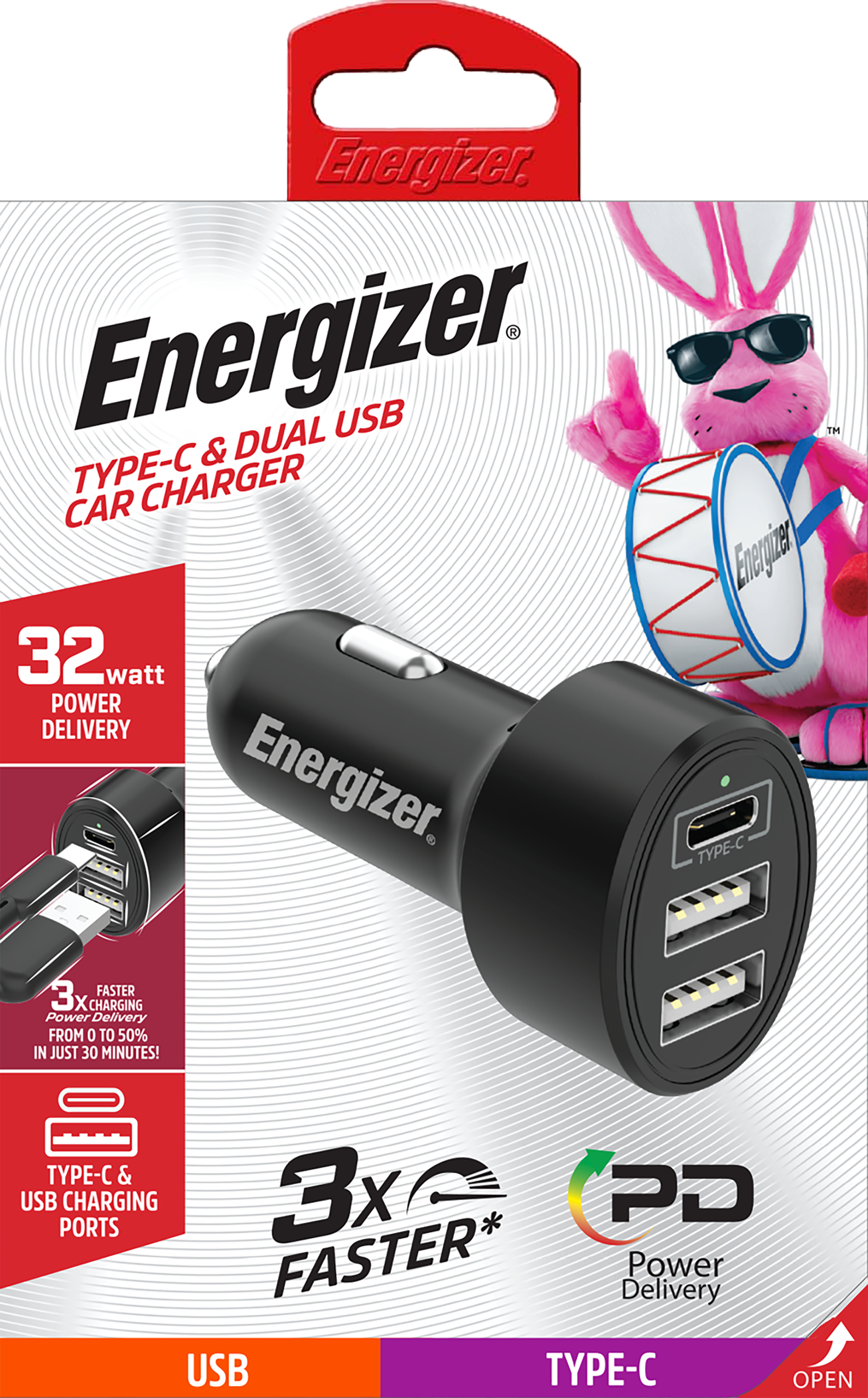 Introducing the Energizer 32W PD & Dual USB Car Charger, the perfect companion for charging your devices on the go. Designed with efficiency and versatility in mind, this car charger combines Power Delivery (PD) technology with dual USB ports, providing fast and simultaneous charging for multiple devices.With its powerful 32W output, this car charger delivers rapid charging speeds, ensuring your devices are ready for use in no time. Whether it's your smartphone, tablet, or other USB-enabled devices, you can trust the Energizer Car Charger to provide a reliable and efficient charging experience.Equipped with Power Delivery (PD) technology, this charger offers optimized charging for compatible devices, allowing for faster charging times compared to standard chargers. You can conveniently charge your PD-compatible devices at their maximum supported speeds, saving you valuable time.The inclusion of dual USB ports allows you to charge two devices simultaneously, making it perfect for road trips, carpooling, or when you need to share charging with a passenger. The intelligent circuitry ensures safe and efficient charging for all connected devices.Designed with a sleek and compact form, this car charger seamlessly integrates into your vehicle's interior. Its durable construction ensures long-lasting performance even in the harshest conditions, making it an ideal companion for your everyday travels.Specifications