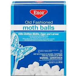 Enoz is the only brand of Moth Preventives still made in the USA! All Enoz products are EPA approved and provide the only sure method of killing destructive moths moth eggs and larvae. Enoz Moth Balls Flakes and Crystals are ideal to use for long-term or seasonal storage of your valuable clothing and other household items storage areas such as drawers chests and trunks. Enoz Moth Preventives penetrate every fold and crease of stored items ensuring worry free moth protection. Features Old Fashioned and Moth balls Cello wrap and protective wrap Kills clothes moths and their eggs and larvae in clean airtight containers such as chests trunks garment bags and storage closets Allows air to flow through packet so active ingredients can work Box of 10Specifications