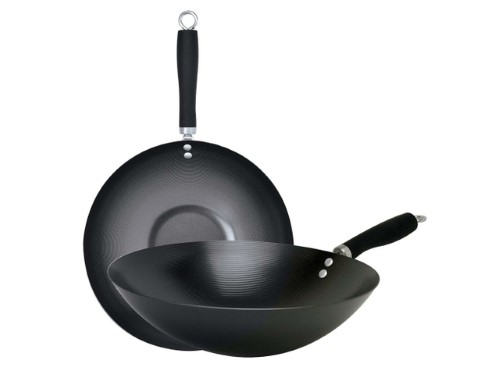 12" Non-Stick Wok. This wok is perfect for your healthy stir fry favorites, or any dish that requires quick cooking over high heat. The small size is perfect for making some stir-fried vegetables in a snap or preparing a quick meal for one. Our beautifully designed woks feature a flat base for balance and stability. Durably crafted in heavy-duty gauge carbon steel, which heats quickly and evenly, these sturdy woks are coated in safe, nontoxic, PFOA free non-stick coating for easy food release and quick and convenient cleanup. The riveted handles offer a firm and stable grip. These heavy-duty carbon steel woks are dishwasher safe to save you precious time in the kitchen.Specifications