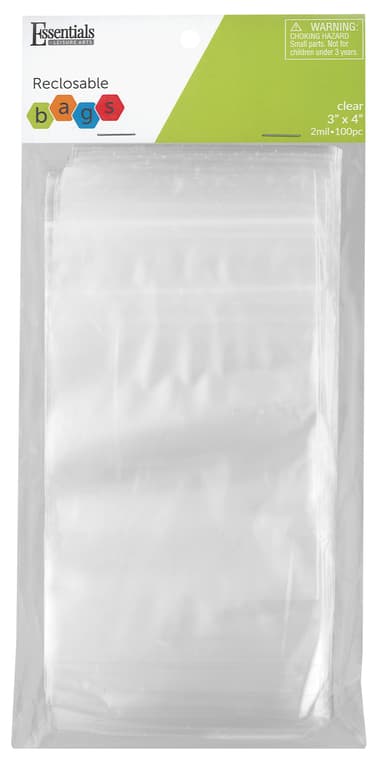 Essentials by Leisure Arts Reclosable Bags are great for organizing items! They're see through so you can tell what you have! Organize all your scrapbooking, craft, household, office, and workshop items so you can find them when you need them. Press the channels together at the top of the bag to zip closed. 2mil 3"x 4" 100pcSpecifications