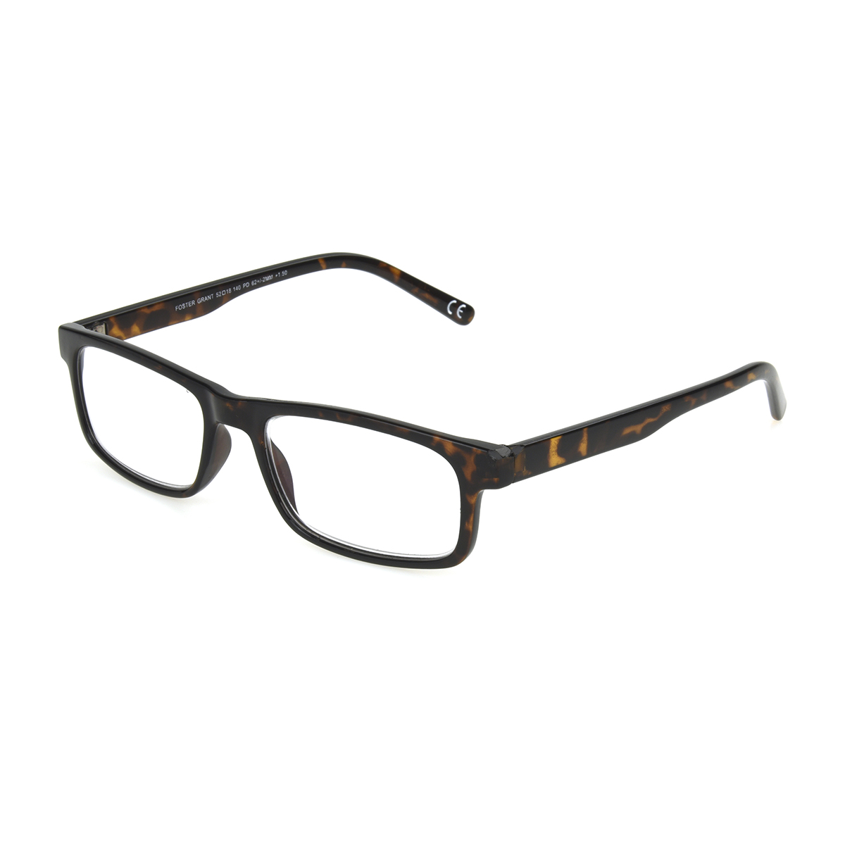 Plastic rectangular frame in shiny classic tortise shell color. 2.75 DIOPTERSpecifications