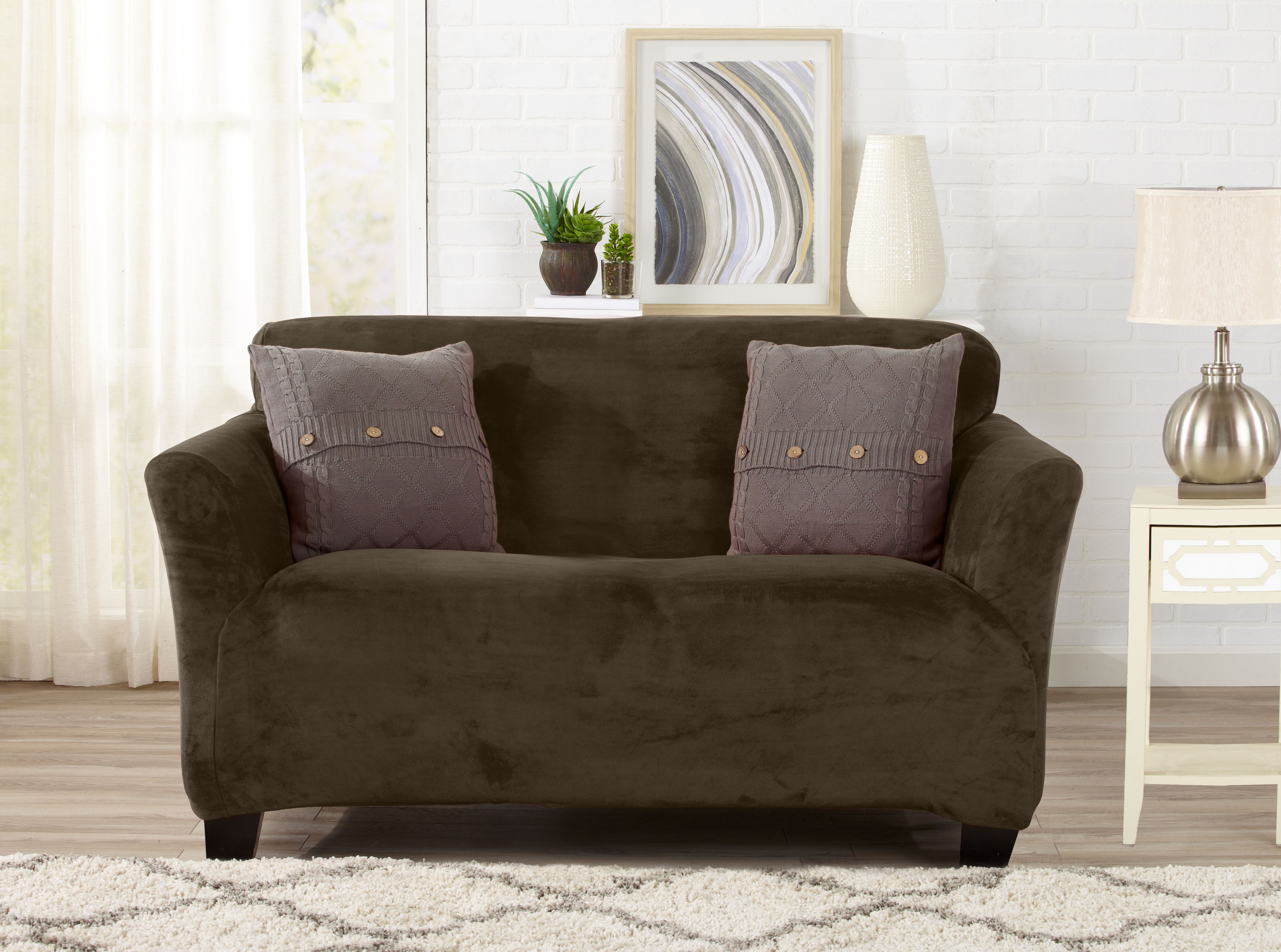 COLOR CHOICE NOT GUARANTEED FOR ONLINE ORDERS Solid Color Velvet Plush Stretch Slip Covers protects furniture from spills and stains. Great for families with petsSpecifications