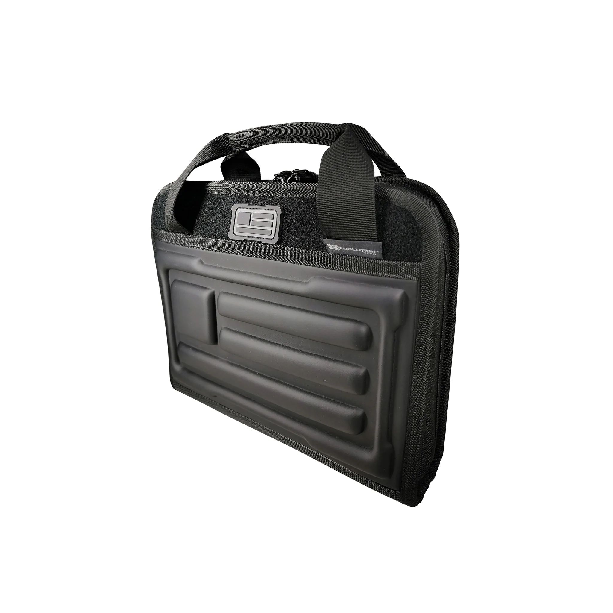 Whether you're logging time in at the range or going on an outdoor adventure, it's time to gear up with the EVOLUTION TACTICAL line. The EVA TACTICAL PISTOL CASE is loaded with premium padding, functionality and superb durability. With a Matte finish EVA construction, this is the tactical pistol case to own. Not only does this tactical gun case look good but is truly heavy duty and will last for years. You'll love the functionality and features loaded into this case. Equipped with heavy gauge foam padding, this TACTICAL PISTOL CASE offers maximum impact resistance to protect your firearm from damage. It also has a soft debossed fleece interior lining to protect your firearm's finish. This premium pistol case is clean, sleek and functional. It's designed with an interior zippered pocket for your accessories, but also has hook and loop tie straps to secure firearm. Transporting this tactical case will be a breeze with the comfortable tubbed top carry handles. It's also equipped with the convenience of paracord zipper pulls which are easy to reach and grab. The Tactical Pistol Case Dimensions are 12" x 9" x 1.5" inches. With premium functionality and features, this will be your "go to" TACTICAL GUN CASE to transport and carry your firearm for your range days or outdoor adventures.Specifications