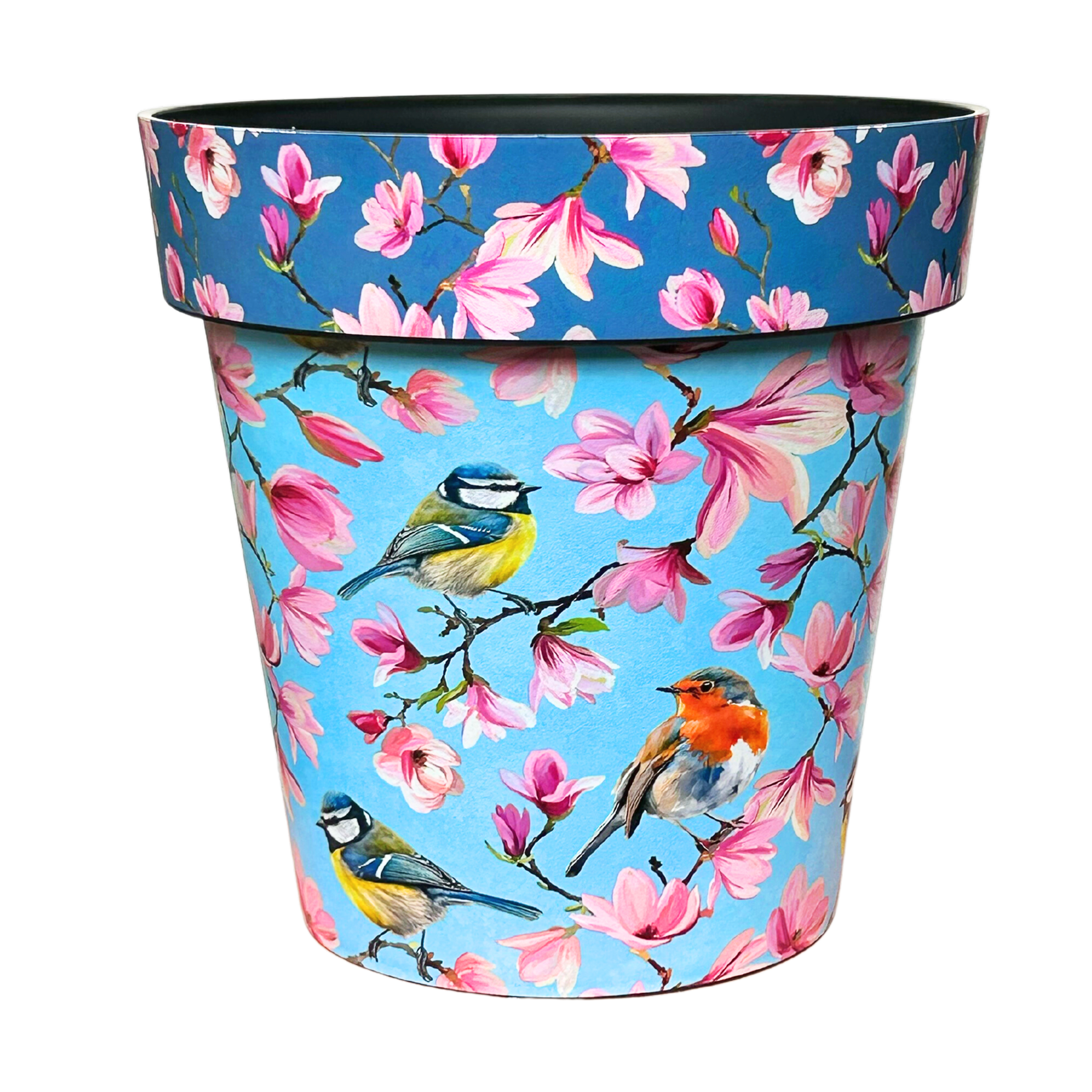 Add a splash of color to your garden with this Exhart 8.5" Vibrance Planter. It is lightweight and eco friendly and features a unique watercolor birds design.Specifications