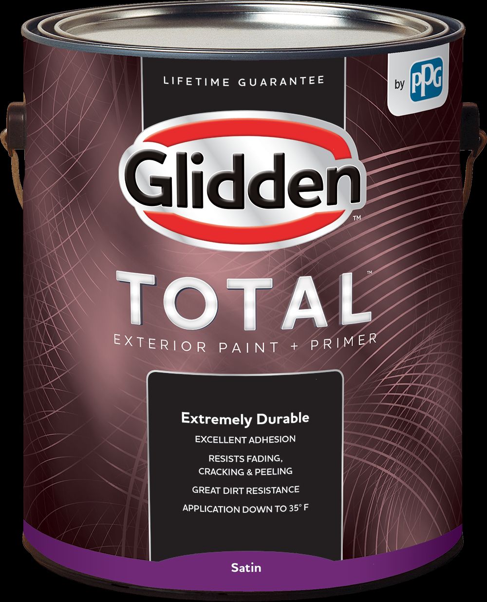 Glidden Total Exterior Paint + Primer is extremely durable and offers protection in all climates, season after season. With low temperature application and excellent adhesion you don’t have to wait for warm weather to get the job done. This paint resists fading, cracking and peeling and has great dirt resistance so it stays cleaner longer while giving you enduring beauty and protection for your home. All this and its backed by our lifetime guarantee.Specifications