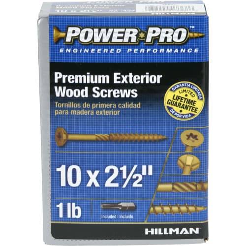 Power Pro premium exterior deck and wood screws include a limited lifetime guarantee against rust and corrosion. The fastener coating is guaranteed against corrosion in cedar, redwood, and treated lumber for the life of the project.Specifications