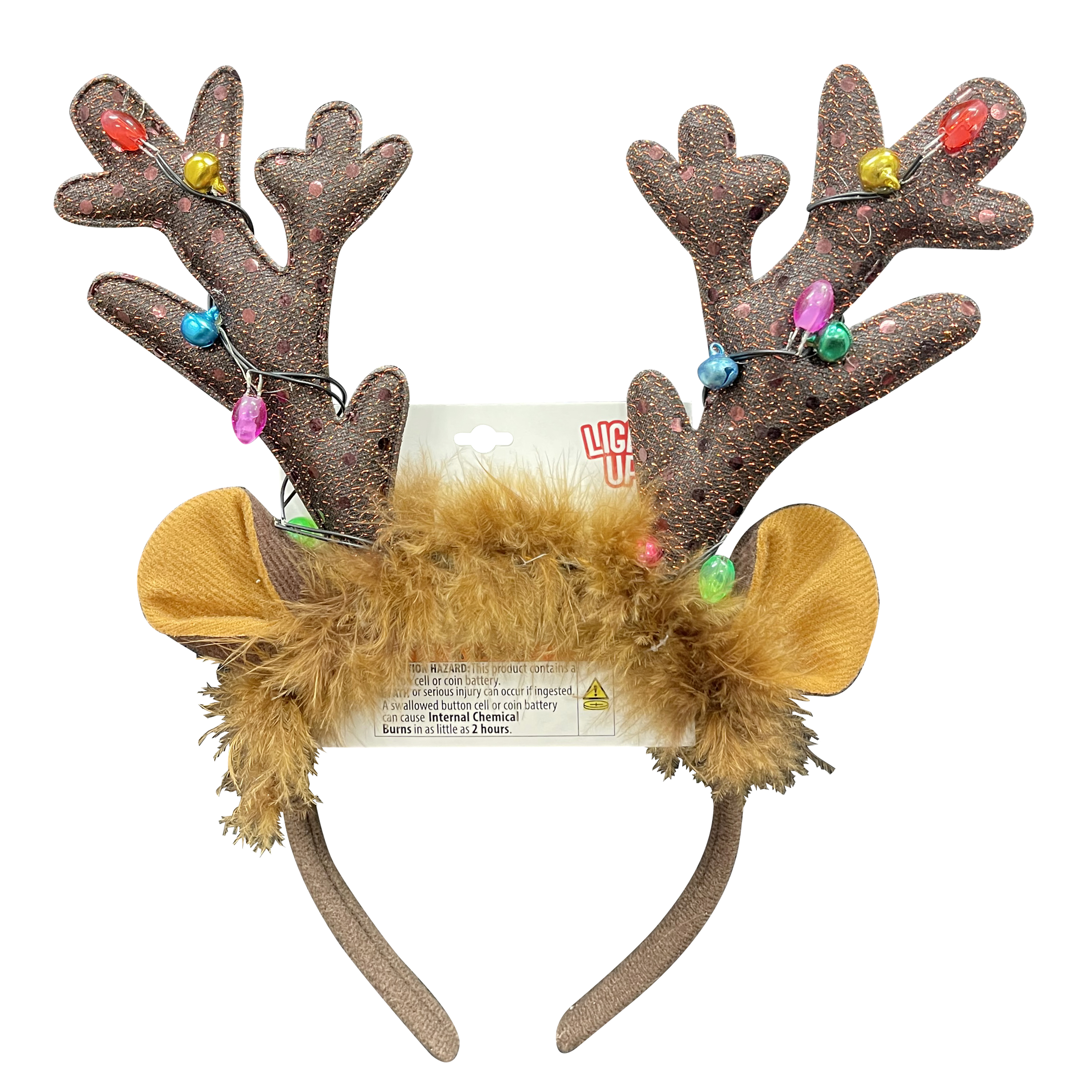 Make spirits bright with this festive light-up reindeer antler headband, featuring colorful Christmas lights that actually glow! Perfect for holiday parties, photos, or festive outings, this cheerful accessory adds a playful and eye-catching touch to any seasonal look.Specifications