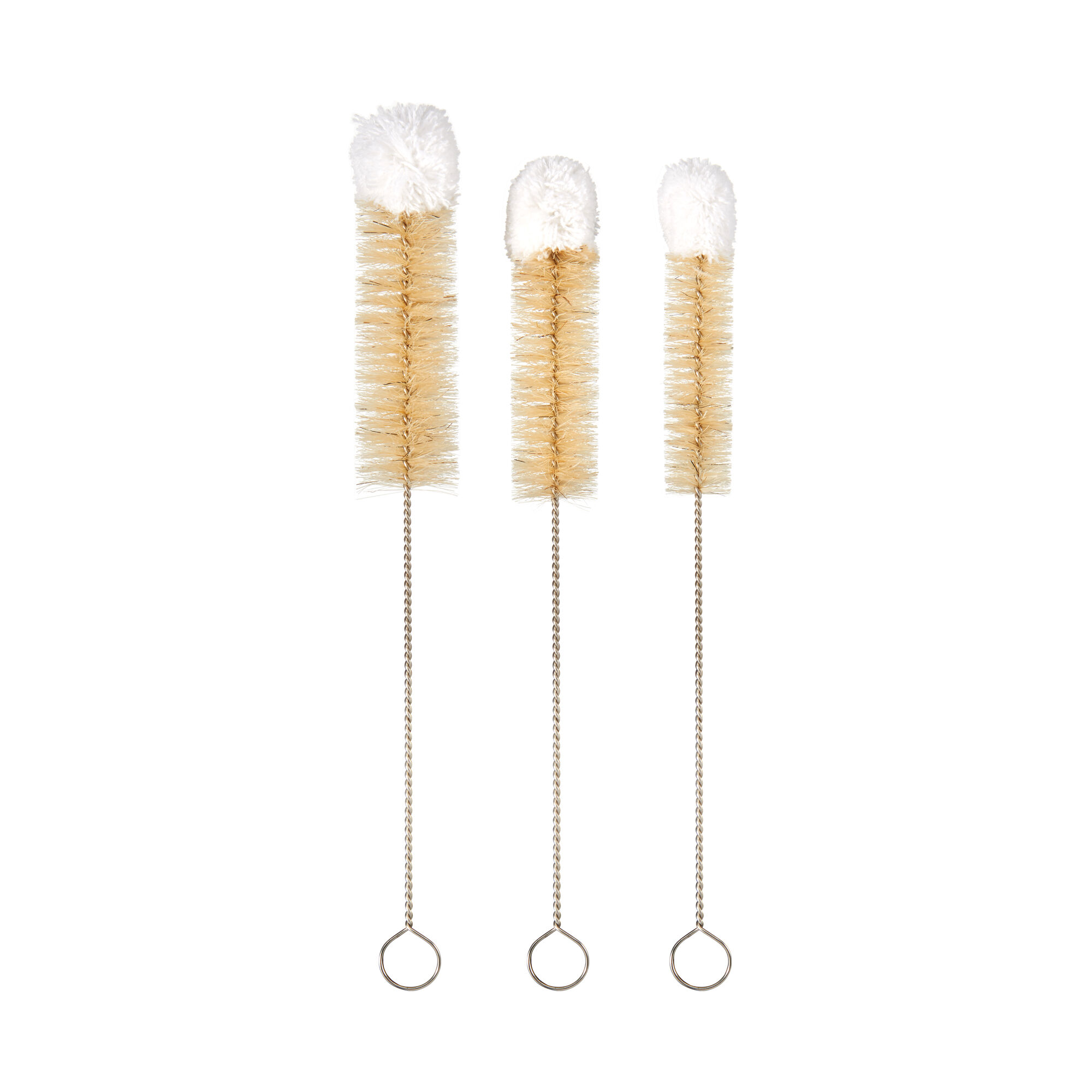 The special slim design of these different-sized brushes helps you reach deep into narrow-necked vessels; Use for cleaning water bottles, tumblers, travel mugs, tea kettles, vases, and more; 360-degree bristles help you hit every area; Protects your vessels from scratching while you clean; for better control and for hanging when not in useSpecifications