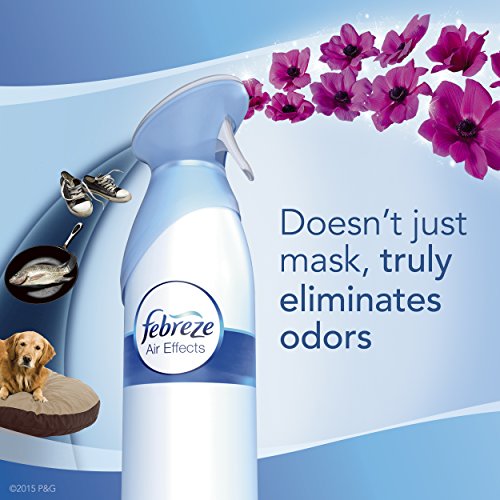 Whether its smoke trash or pet odors Febreze doesnt just mask odors it cleans them away with OdorClear Technology leaving your air with a light fresh scent. Arm your indoor areas with a can and dont be afraid to take in a deep breath. Reach for Febreze AIR to eliminate odors on the spot. Spray the air in a sweeping motion throughout the entire room to clean away odors from everyday pet and bathroom smells to stubborn smoke and leftover cooking odors. With Febreze Air Effects air freshener you can kick odors out and invite freshness in. Scent: Linen & SkySpecifications