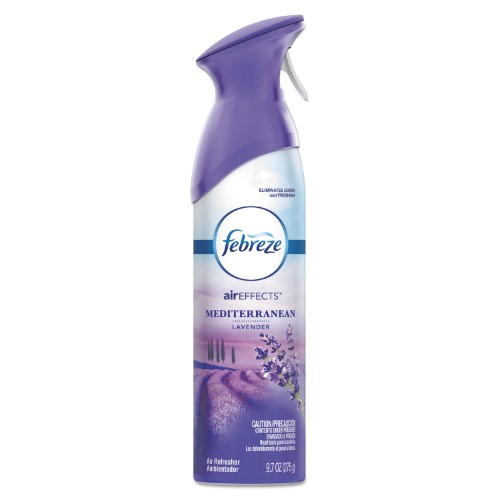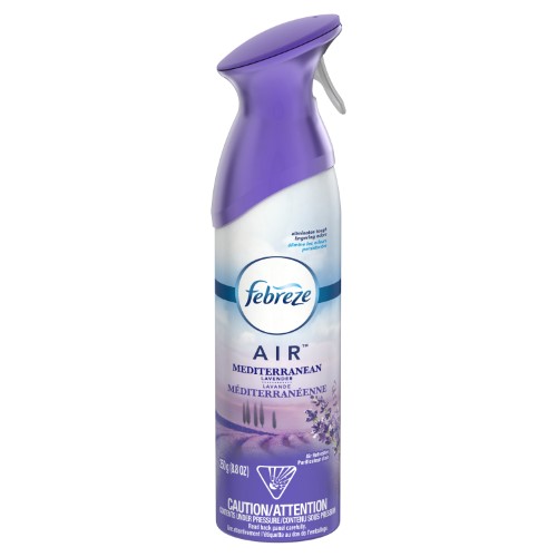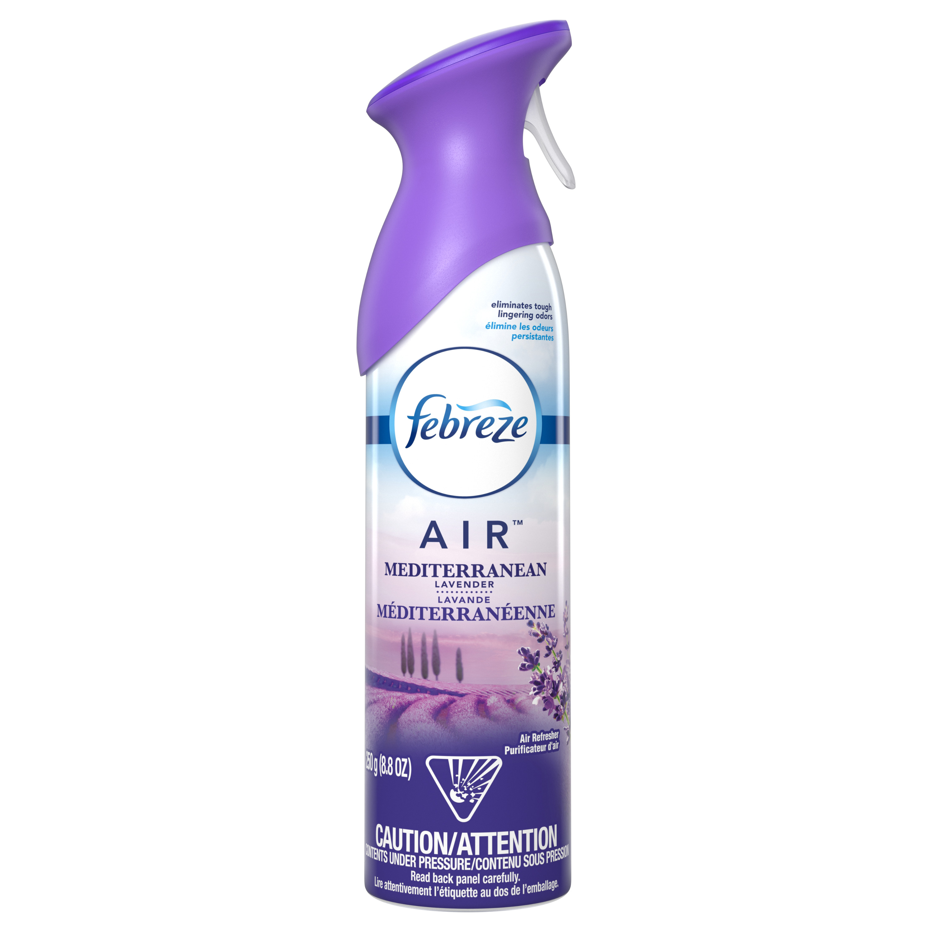 Whether its smoke trash or pet odors Febreze doesnt just mask odors it cleans them away with OdorClear Technology leaving your air with a light fresh scent. Arm your indoor areas with a can and dont be afraid to take in a deep breath. Reach for Febreze AIR to eliminate odors on the spot. Spray the air in a sweeping motion throughout the entire room to clean away odors from everyday pet and bathroom smells to stubborn smoke and leftover cooking odors. With Febreze Air Effects air freshener you can kick odors out and invite freshness in. Scent: Mediterranean LavenderSpecifications