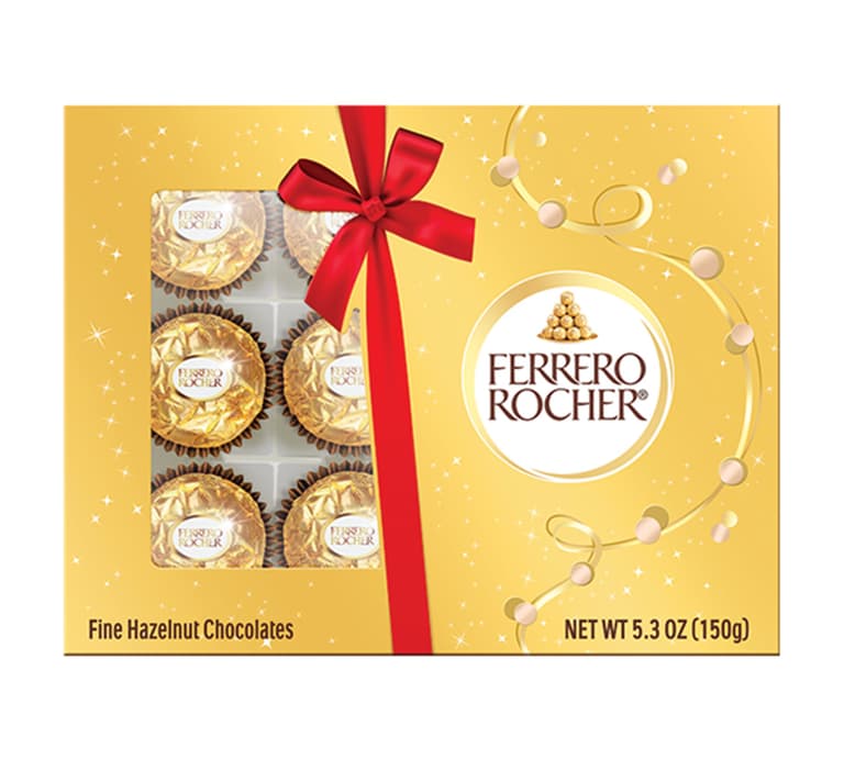 A timeless classic in elegant seasonal packaging just for the holidays. Perfect for holiday gifting and sharing with friends and family, each box has 12 iconic Ferrero Rocher chocolates inside - a whole crunchy hazelnut in delicious creamy filling, encased in a crispy wafer shell, covered with milk chocolate and gently roasted hazelnut pieces.Specifications