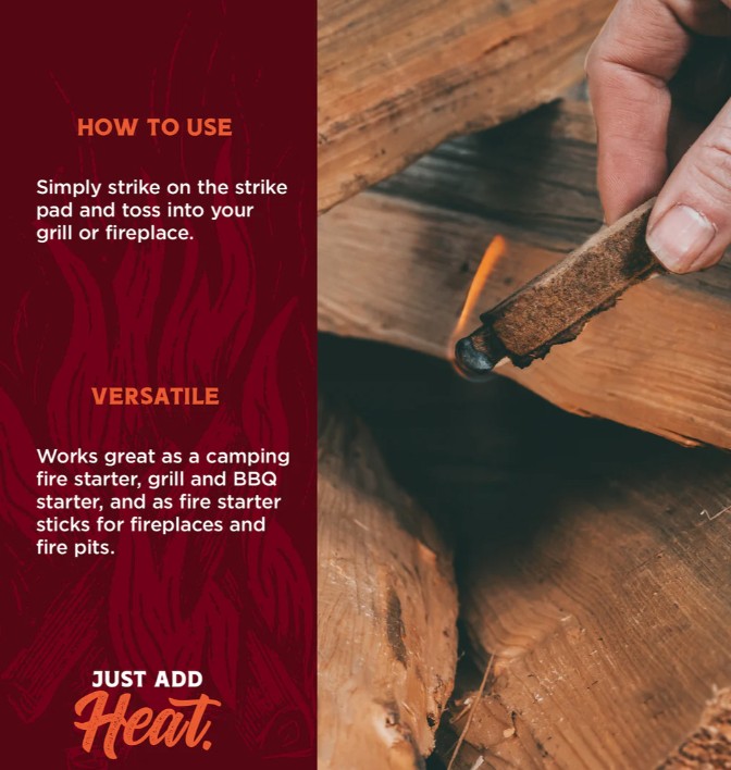 Fire & Flavor's Premium All Natural FatMatch is a combination of a match and fire starter and is designed for cooking, camping, barbecuing, emergency or anytime use. The origin of flavor comes from fire. Quality fire results in high quality flavor. Fire & Flavor's line of natural fire starter products is developed to give you clean and efficient fire to cook your masterpiece. A truly 100% all-natural firestarter for igniting your grill safely, cleanly, and without the risk of chemical odors to ruin your food. Grilling Enthusiasts Dream Come True!Specifications
