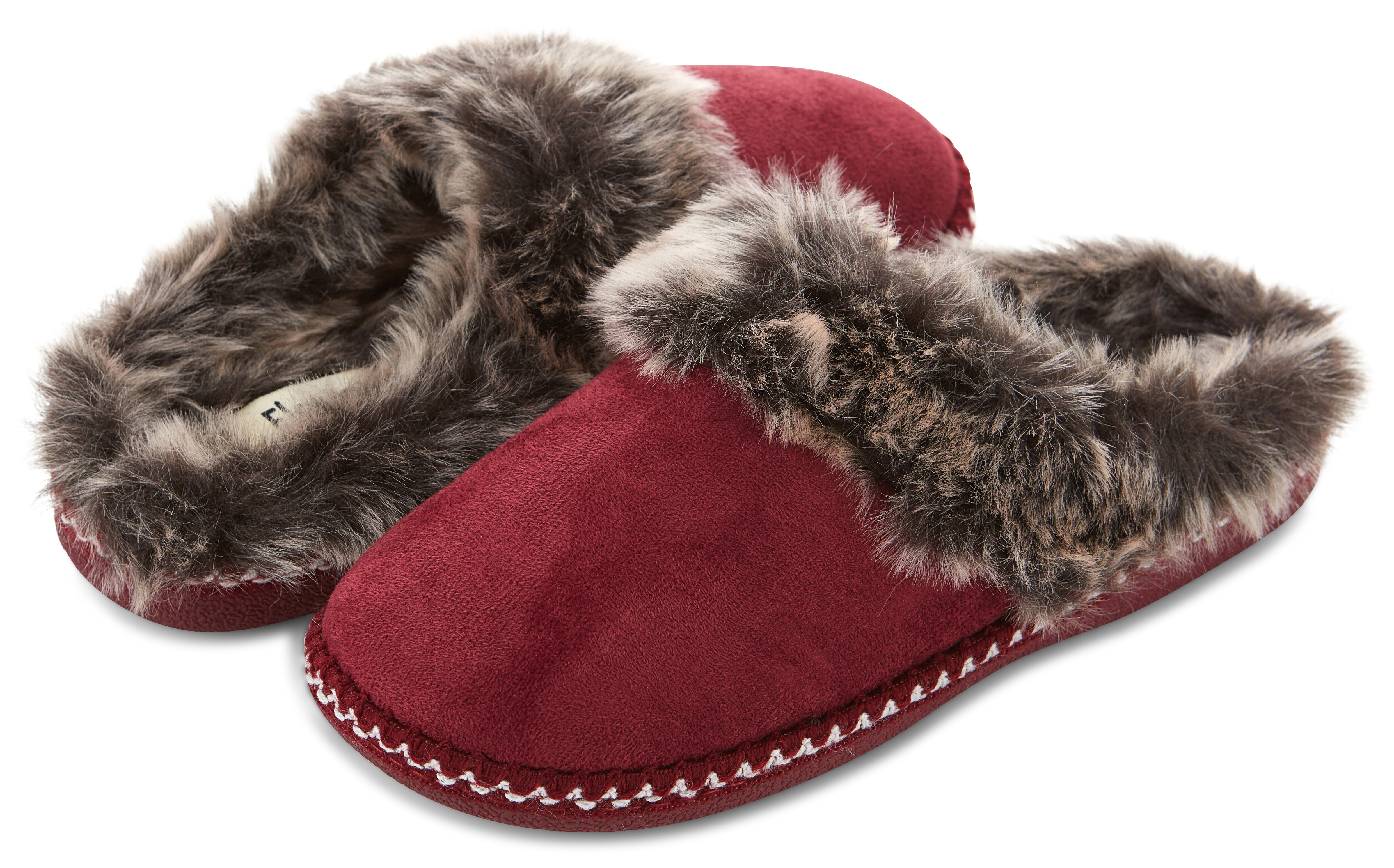 FAUX FUR LINED; MEMORY FOAM INSOLE; PREMIUM MICROSUEDE; RUBBER OUTSOLE; TWO TONE