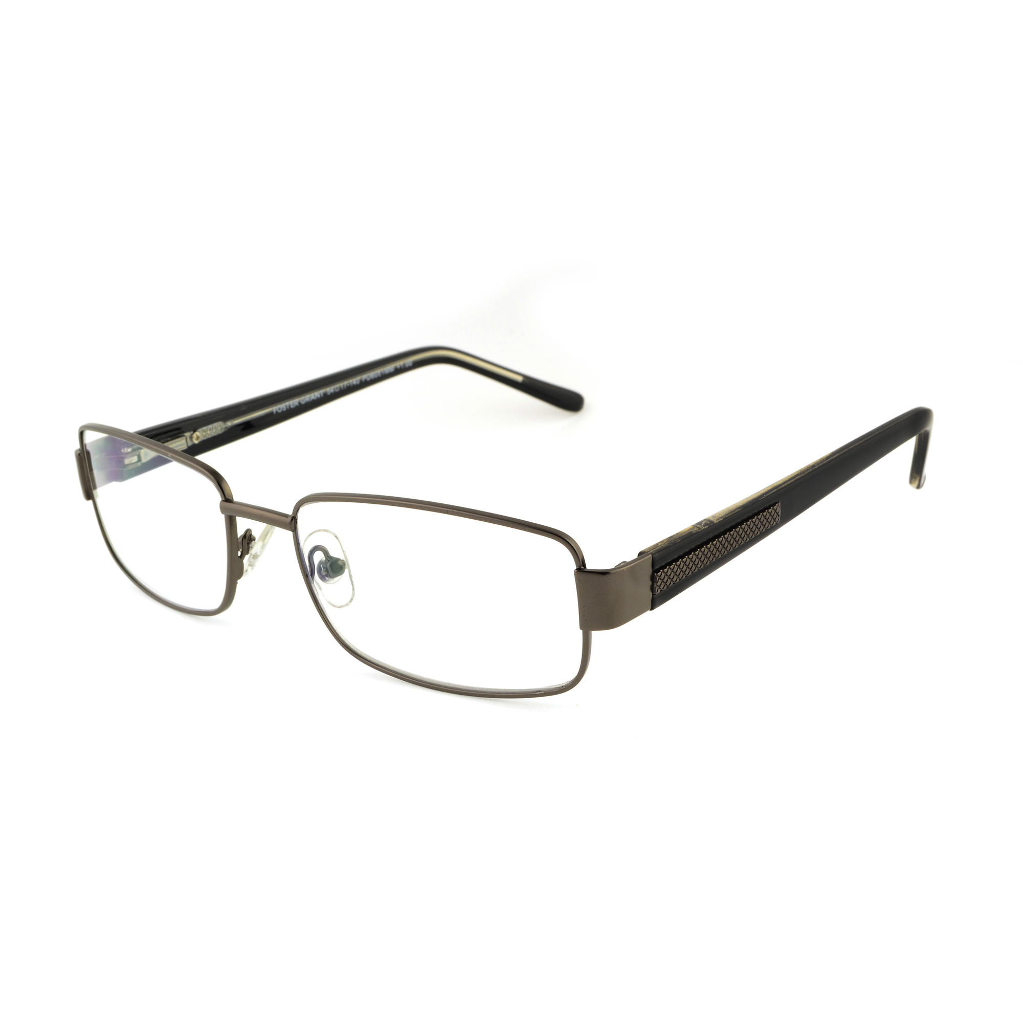Foster Grant Wes men's reading glasses utilize Multi Focus lens technology combined with a stylishly versatile full rectangle frame (with metal fronts and coordinating plastic temples). The Multi Focus lenses allow the user to read, work on the computer and interact with others nearby, all in one. Comes with a convenient carrying case and cleaning cloth. Multi Focus reading glasses feature three strengths in one lens. The bottom third has the highest strength (and the power you choose) for reading, the middle third has a slightly reduced magnification for computer use, and the top third has about half the strength of the bottom, for clarity when interacting with someone nearby (sitting across a desk, for example). This innovative Multi Focus lens technology means no more taking your readers off and putting them back on to see things clearly at different distances.Specifications