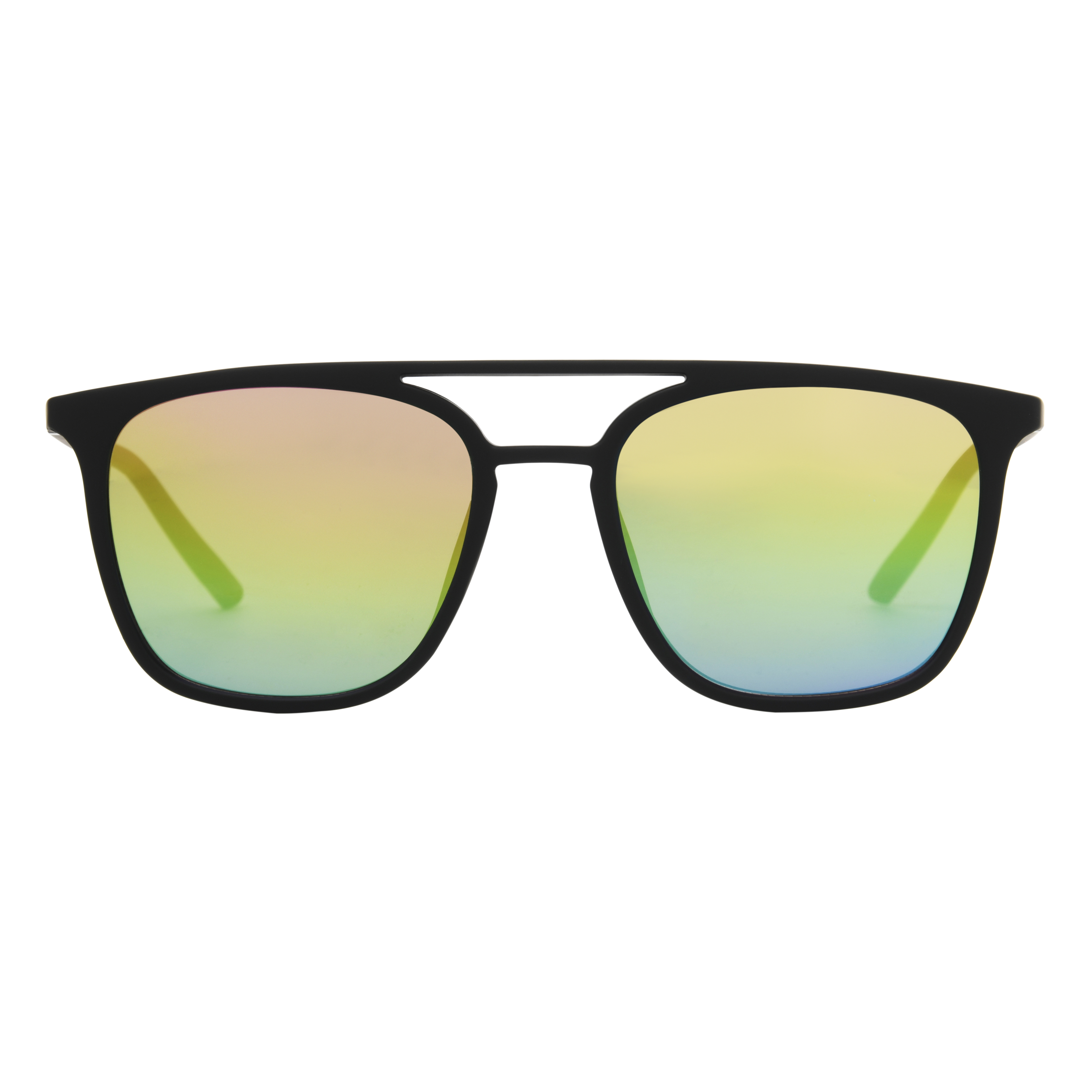 These CaliBlu Polarized Men's Sunglasses feature a modern aviator-inspired shape with a sleek black full-rim frame and bold rainbow mirrored lenses for standout style. Lightweight yet durable, they’re designed to keep up with everyday wear while adding a vibrant edge. The lenses, made with recycled plastic, are scratch and impact-resistant and provide 100% UVA-UVB lens protection. A perfect mix of fashion and function for bright, sunny days.Specifications