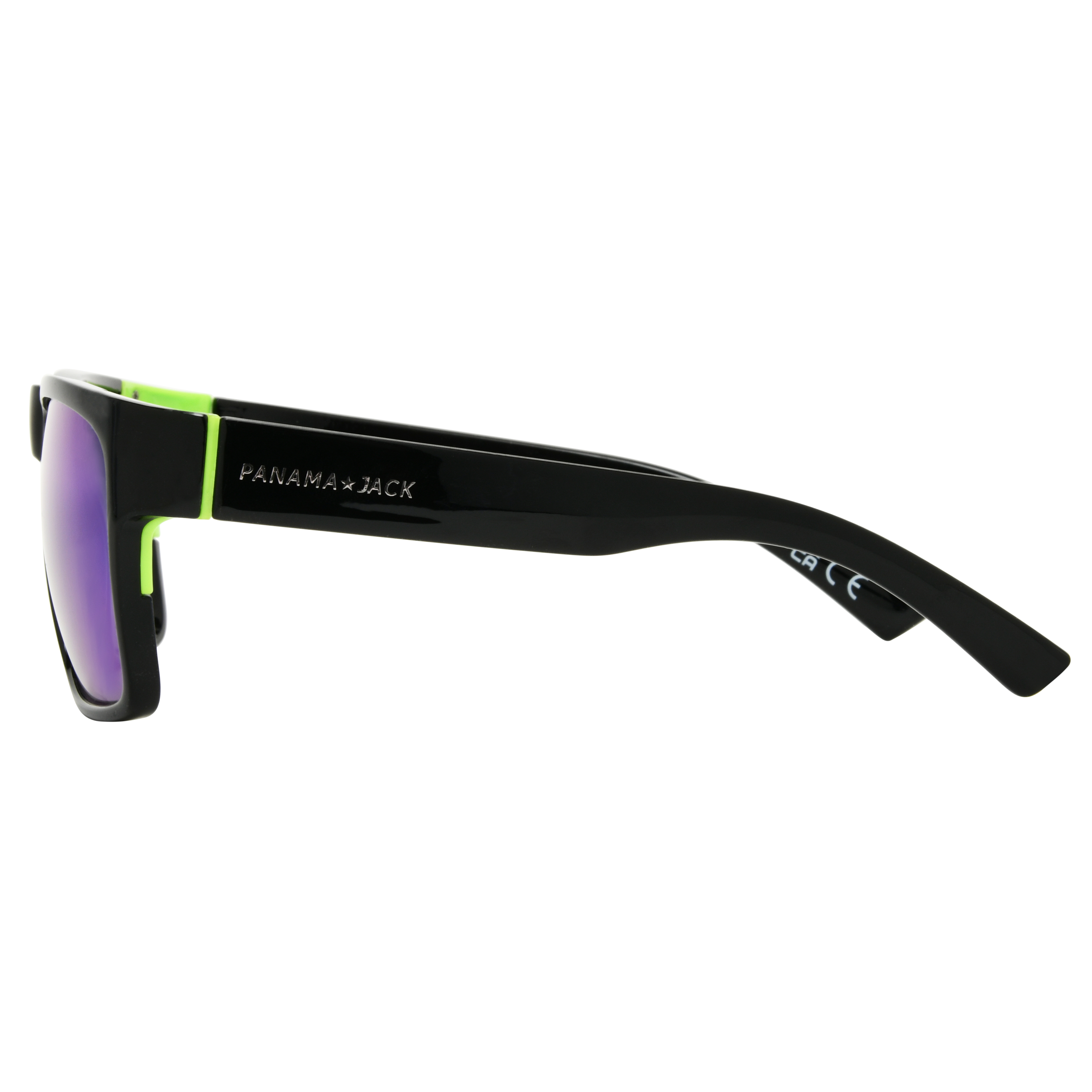 These Panama Jack x Foster Grant Black Square Men's Sunglasses feature a strong square frame in matte black with subtle green accents for a modern, athletic edge. The mirrored polarized lenses reduce glare while adding a bold pop of color. Built with scratch and impact-resistant lenses, they also provide 100% UVA-UVB lens protection. Sleek and durable, they’re perfect for both everyday wear and active outdoor use.Specifications