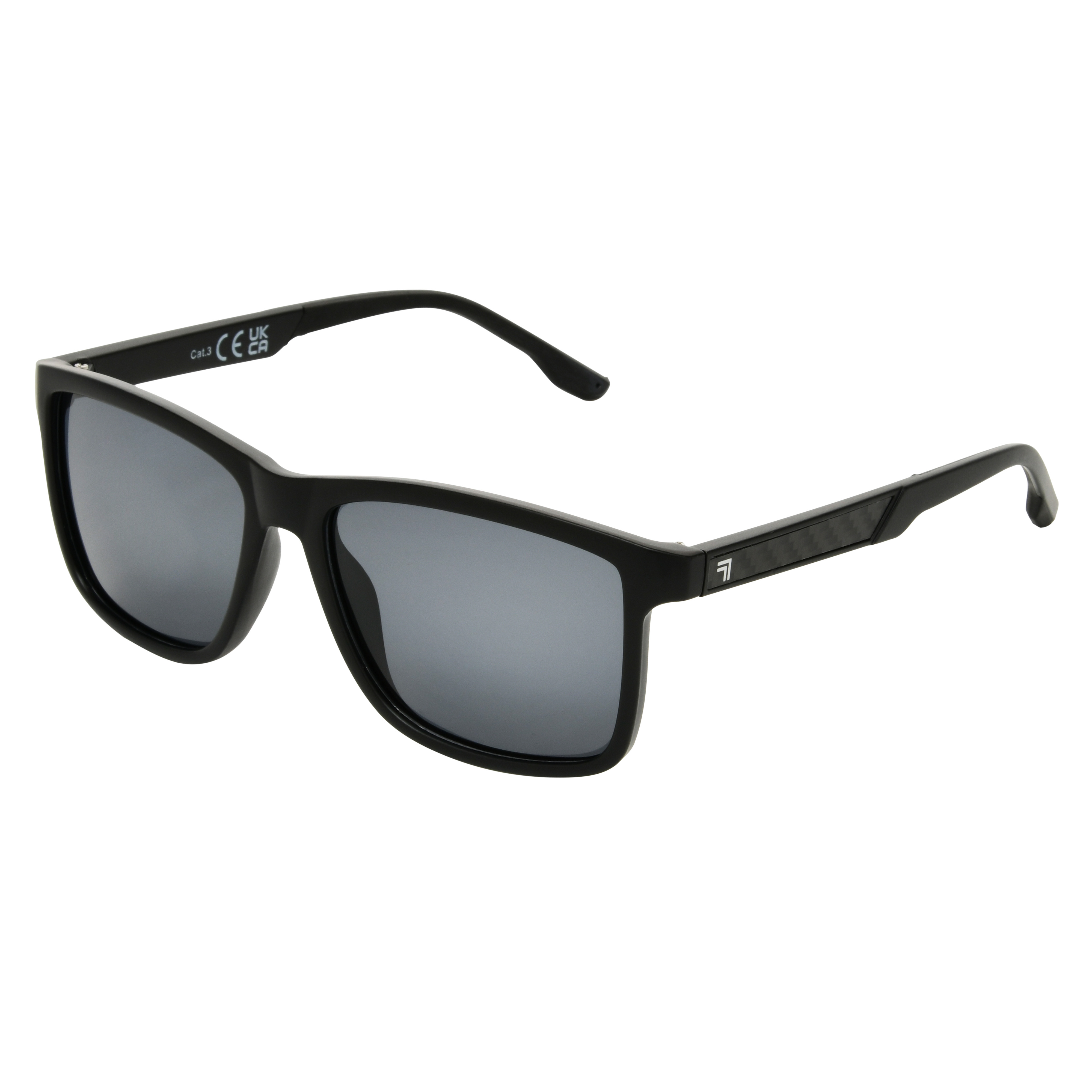 These black vented Sharper Image x Foster Grant Thinker Sunglasses combine smart airflow with a sleek silhouette for all-day comfort. Made from recycled plastic, the frame features carbon fiber co-injected temples for added strength and ergonomic support. Polarized TAC lenses reduce glare and provide 100% UVA-UVB protection, while scratch and impact-resistance ensures long-term clarity. Comes with a protective casebecause performance should always be portable.Specifications