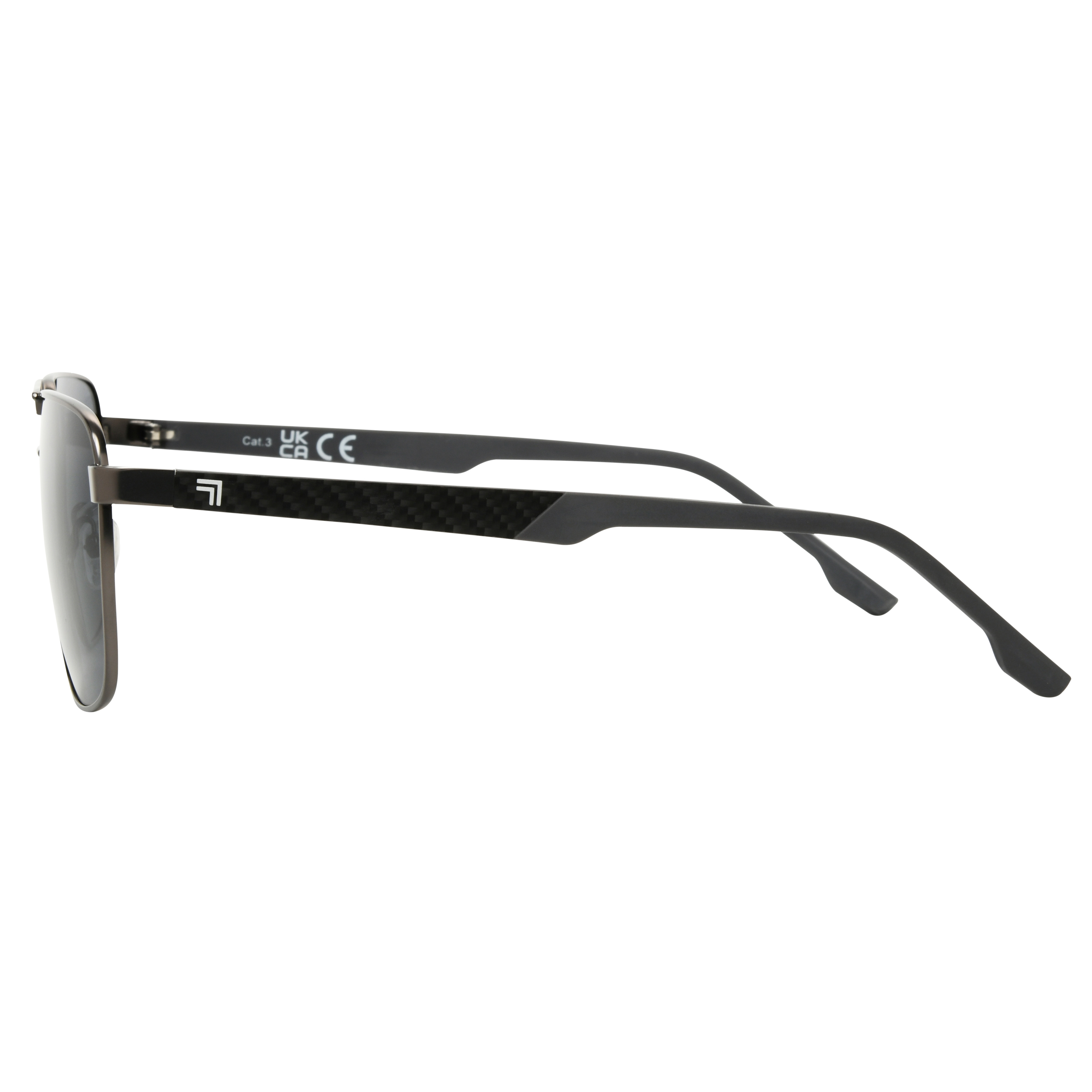 Designed for clean performance and modern utility, these Sharper Image x Foster Grant Engineer Sunglasses deliver timeless form with advanced function. The gunmetal aviator frame is paired with carbon fiber co-injected temples for enhanced comfort and resilience. Polarized TAC smoke lenses reduce glare and offer 100% UVA-UVB protection, while scratch and impact resistance ensures long-lasting clarity. Comes with a casebecause performance deserves protection.Specifications