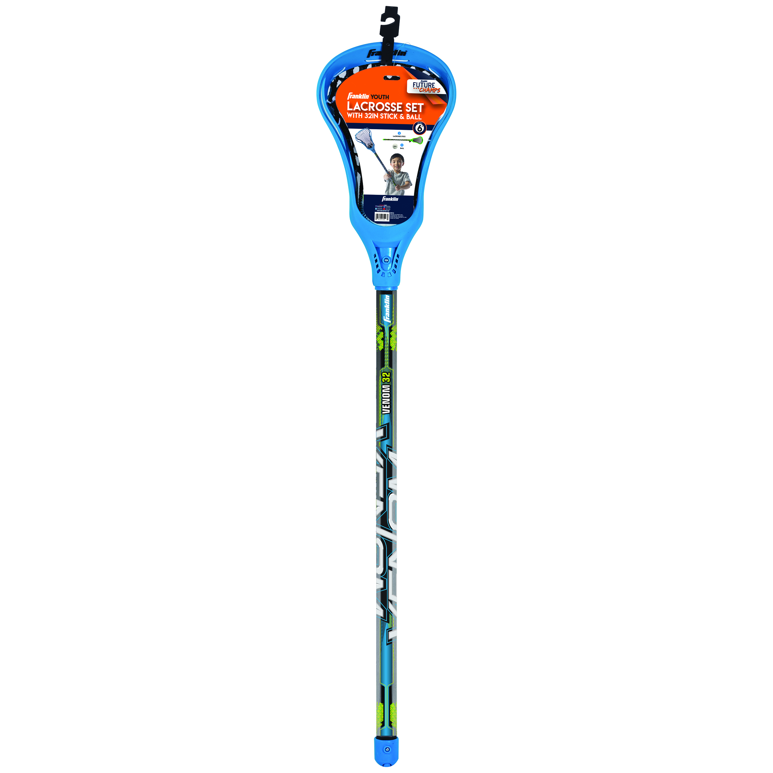 The Franklin Sports Youth 32" lacrosse stick & ball set provides your junior athlete with game equipment that is made for learning. The 32" shaft & head construction was created with the player in mind. The lacrosse shaft is thinner, allowing for easier stick handling, and the lacrosse head features a deep pocket design for better play. A full color graphic wrap is also applied to the shaft, bringing fun and excitement to the sport. This set includes (1) Youth lacrosse sticks and (1) lacrosse ball.Specifications