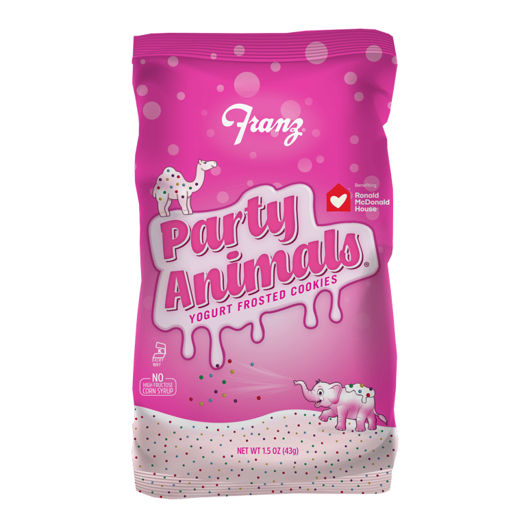 These Franz Frosted Animal Cookies are yummy little snacks that adults and kids can both enjoy. They are pink and white treats with candy sprinkles that have a delightful crunchy texture. They are a fun snack for preschoolers or can be tucked into your older child's lunch box for a sweet treat.Specifications