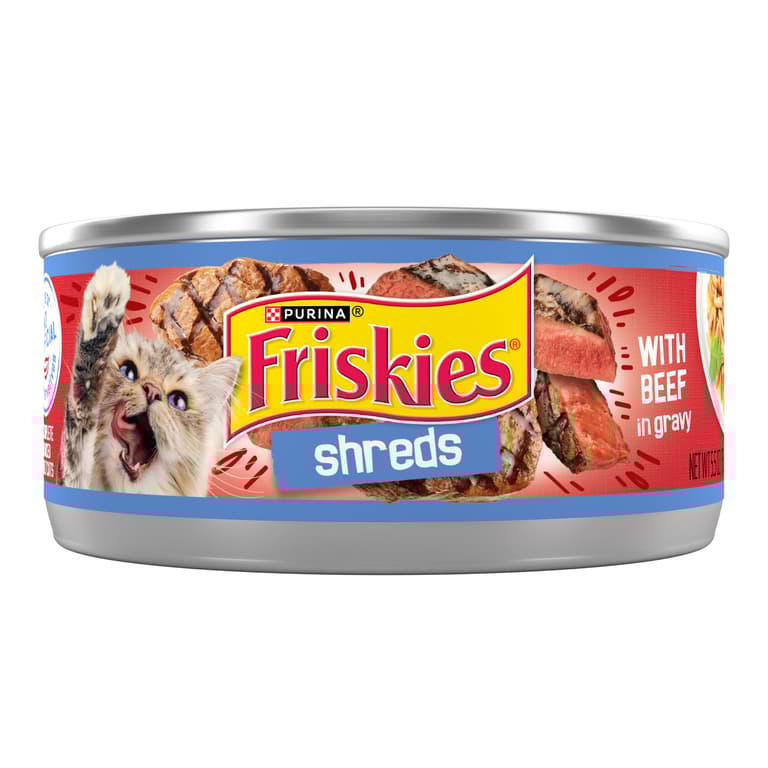 Friskies 5.5 oz savory shreds beef dinner cat food complete and balanced nutrition for kitten growth and adult cat maintenance. With a taste guaranteed to satisfy this nutritious wholesome diet is designed to increase the health and well-being of your cat.Specifications