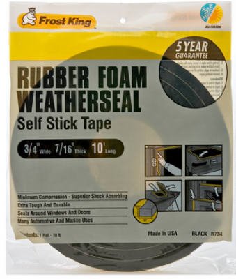 FROST KING AVAILABLE R734H SPONGE RUBBER FOAM TAPE 3/4" W X 7/16" H X 10' L, BLACK, 5/16" T