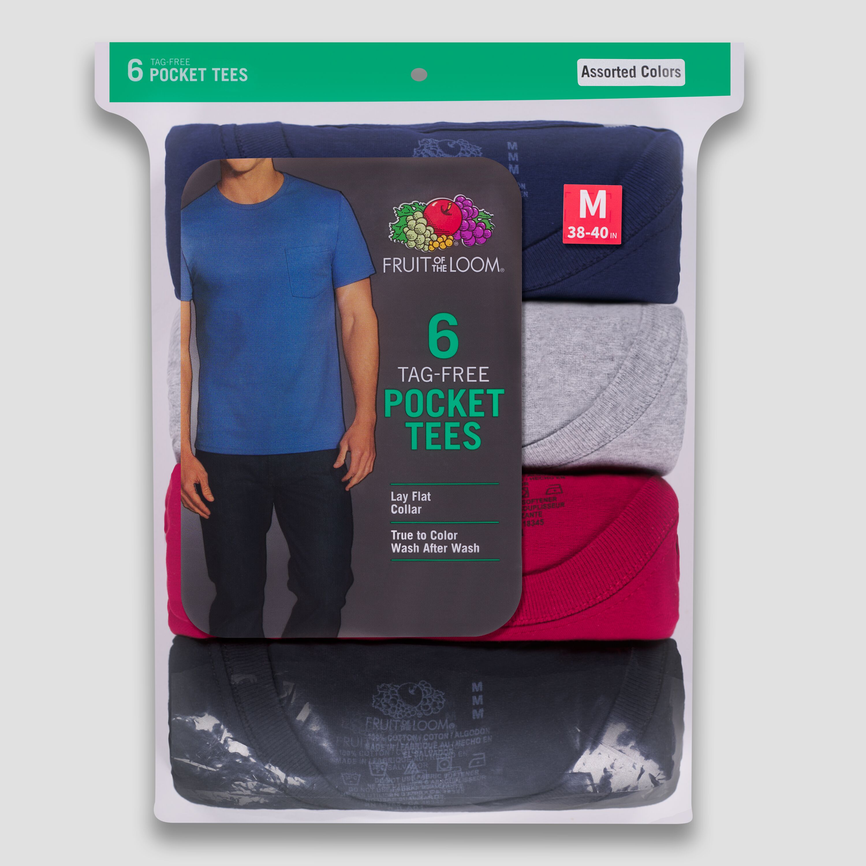 FRUIT OF THE LOOM MENS POCKET TSHIRTS ARE A CASUAL WARDROBE STAPLE THAT YOU ARE GOING TO LIVE IN. THEY FEATURE A TAG FREE COLLAR A REINFORCED POCKET AND ARE MOISTURE WICKING. LIVE YOUR LIFE MORE COMFORTABLY WITH THESE POCKET TSHIRTS.Specifications