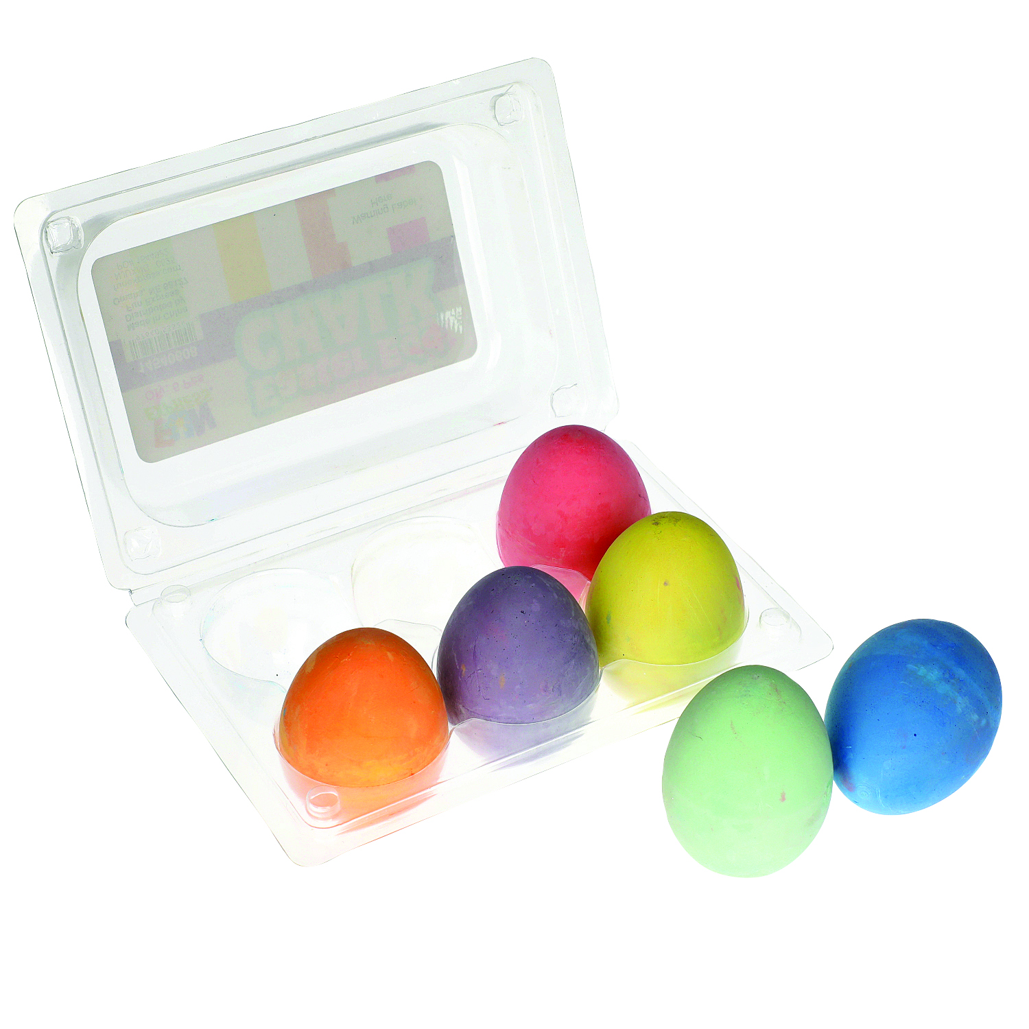 ASSORTMENT OF BRIGHT COLORED EGG SHAPPED CHALK PACK INTO AN EGG CRATESpecifications