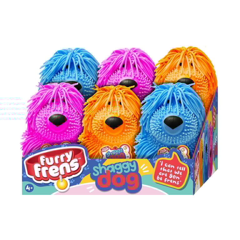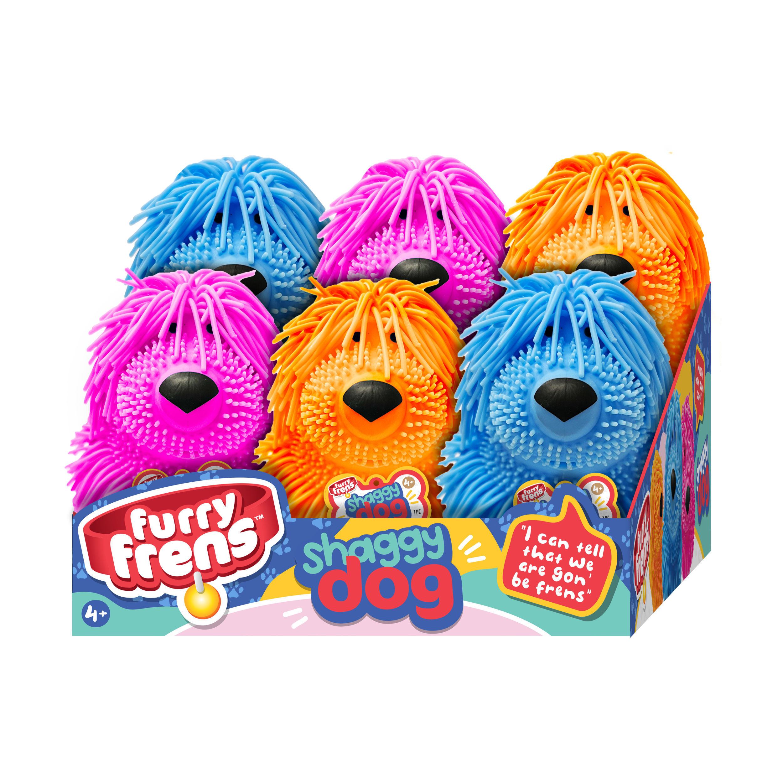 (we cannot guarantee a specific color) If you would like us to choose for you we are happy to do so. If not, please visit us in store to choose your favorite color.Introducing the Furry Frens Shaggy Dog Squishy Wiggle Fidget Toy a delightful and huggable companion that brings joy to both kids and adults alike! This whimsical Squishy Dog is designed to resemble a shaggy mop dog with floppy hairs, creating a lovable and charming appearance that's impossible to resist.Specifications