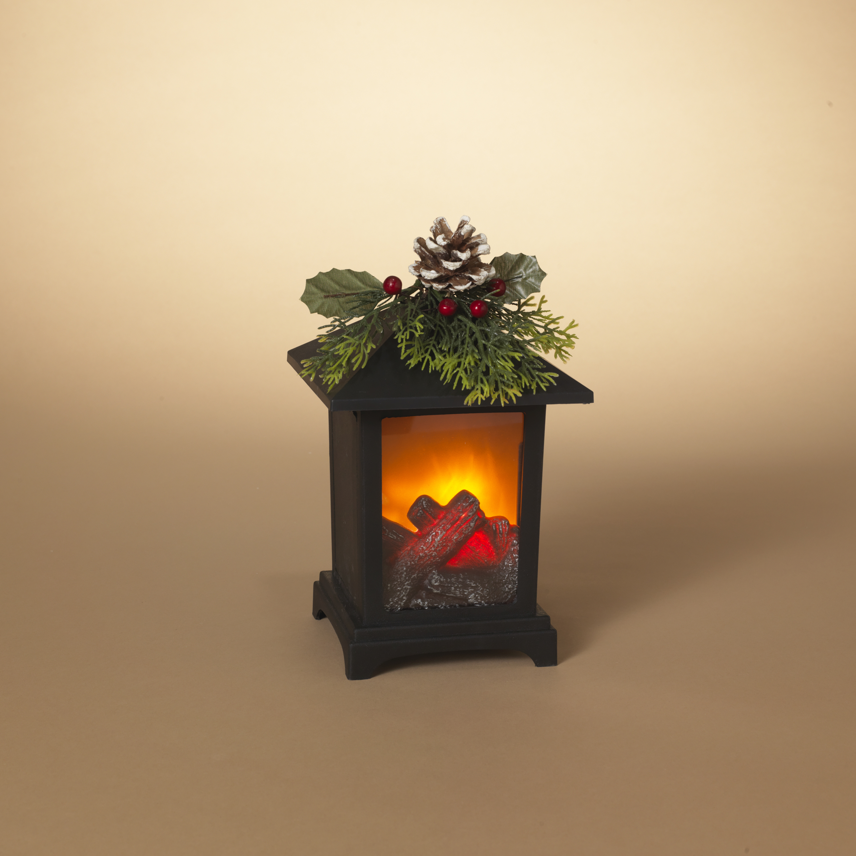 8.8"H Battery Operated Lighted Fireplace Lantern with Floral Accent Includes TimerSpecifications