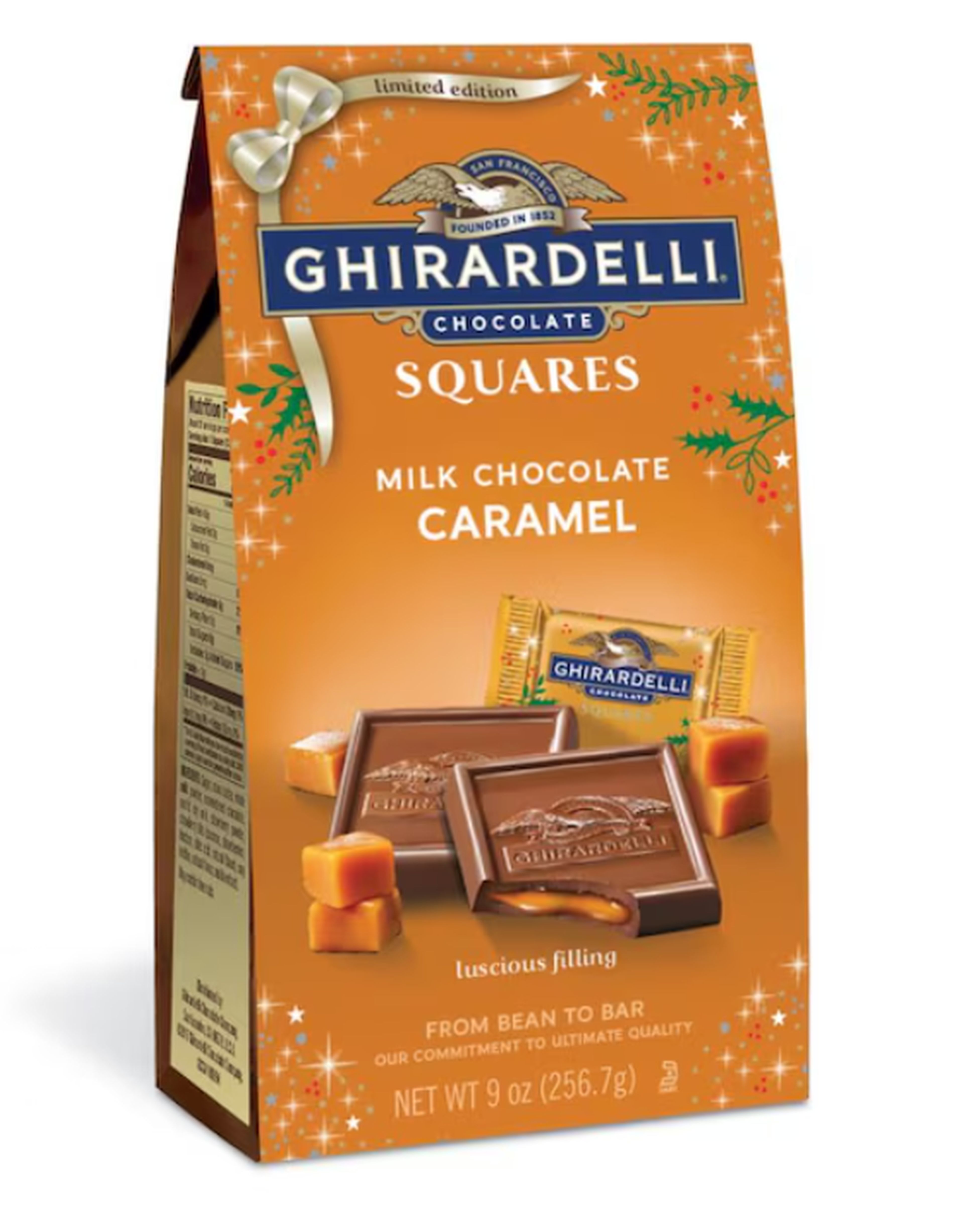 SPREAD CHRISTMAS CHEER THIS YEAR WITH EVERYONES FAVORITE GHIRARDELLI MILK CHOCOLATE CARAMEL SQUARES.THESE INDIVIDUALLY WRAPPED CHOCOLATES ARE PERFECT FOR GIFT GIVING OR SHARING WITH YOUR FRIENDS AND FAMILY.Specifications