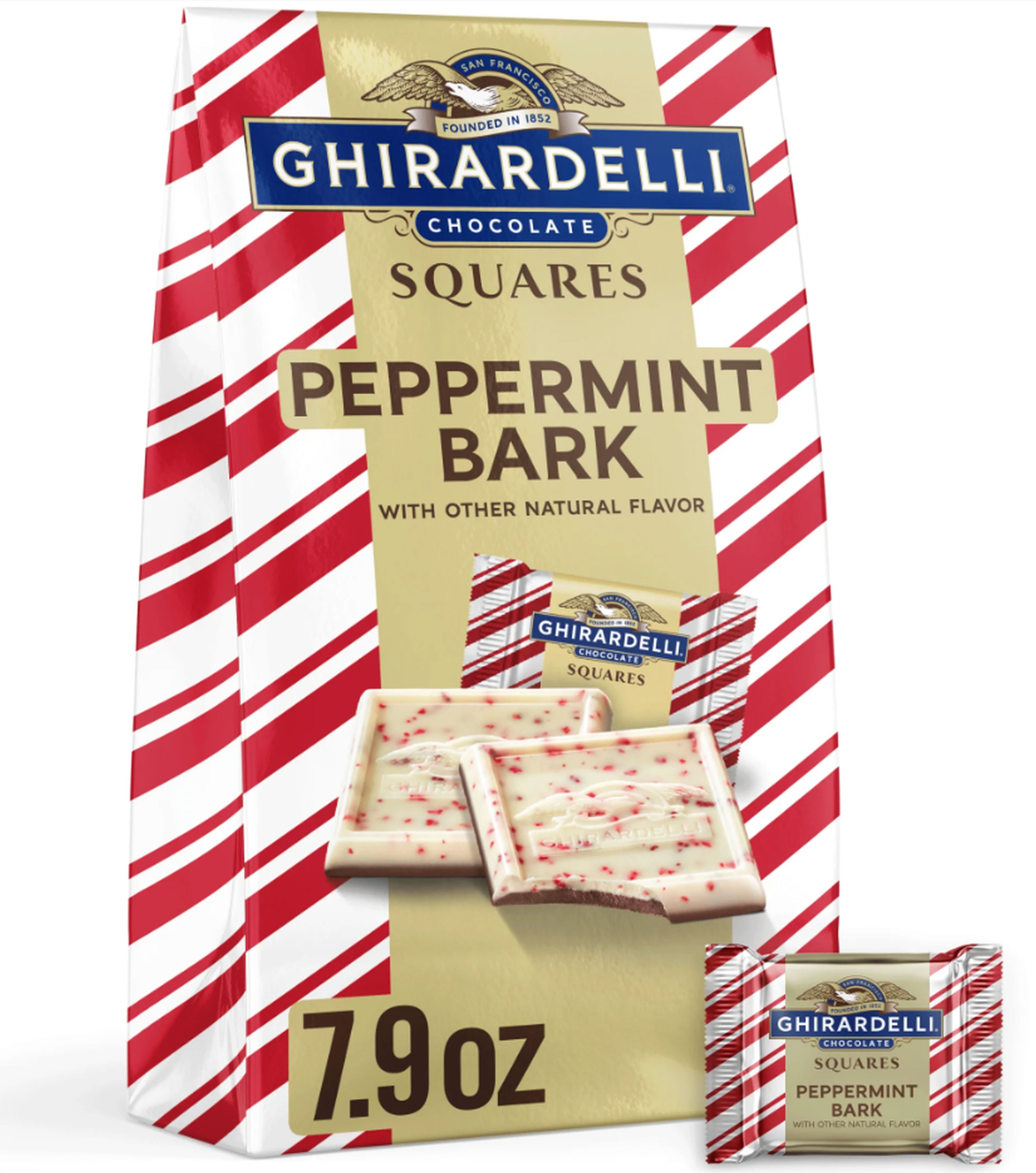 SPREAD CHRISTMAS CHEER THIS YEAR WITH EVERYONES FAVORITE GHIRARDELLI MILK CHOCOLATE PEPPERMINT BARK SQUARES.THESE INDIVIDUALLY WRAPPED CHOCOLATES ARE PERFECT FOR GIFT GIVING OR SHARING WITH YOUR FRIENDS AND FAMILY.Specifications