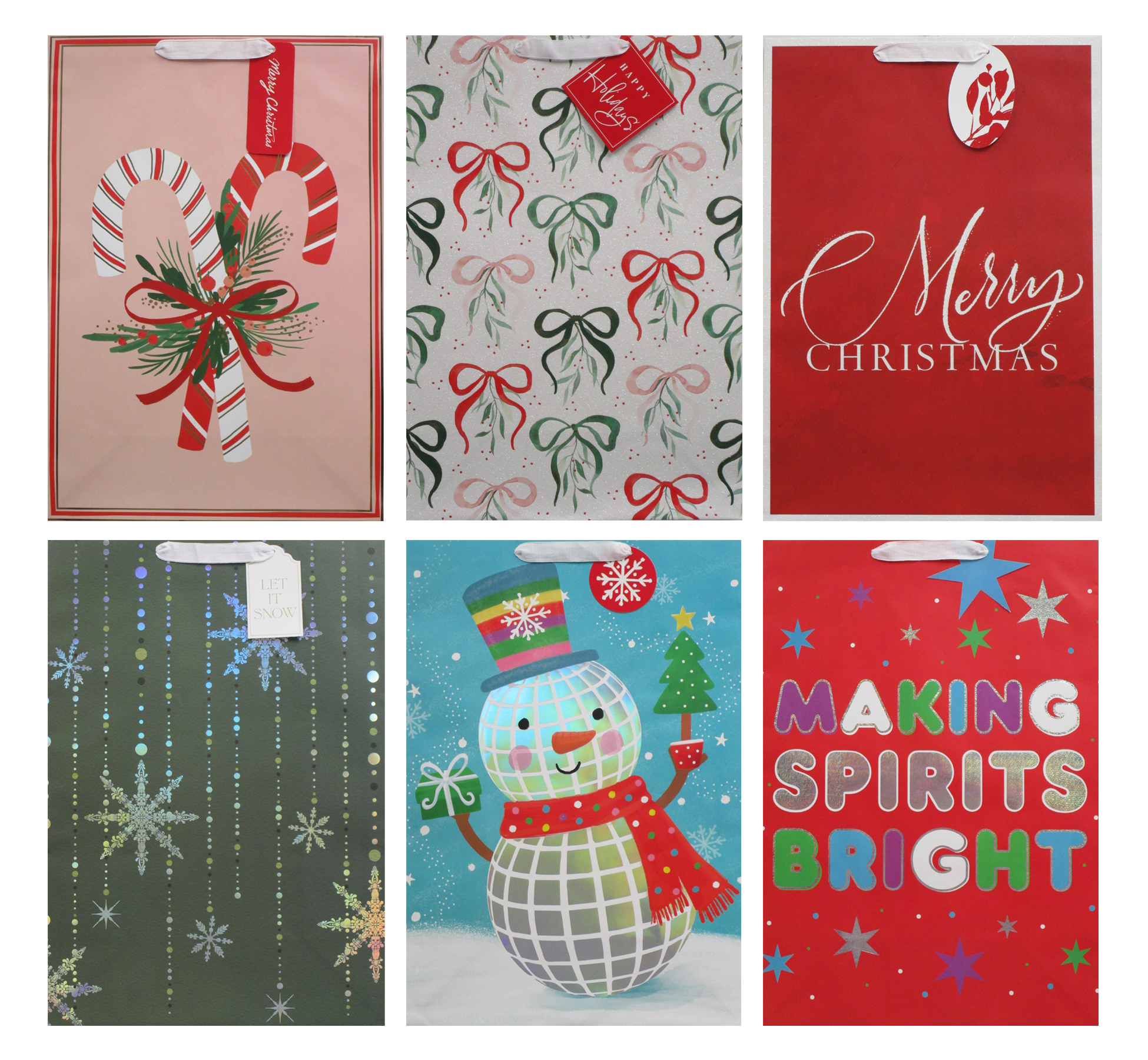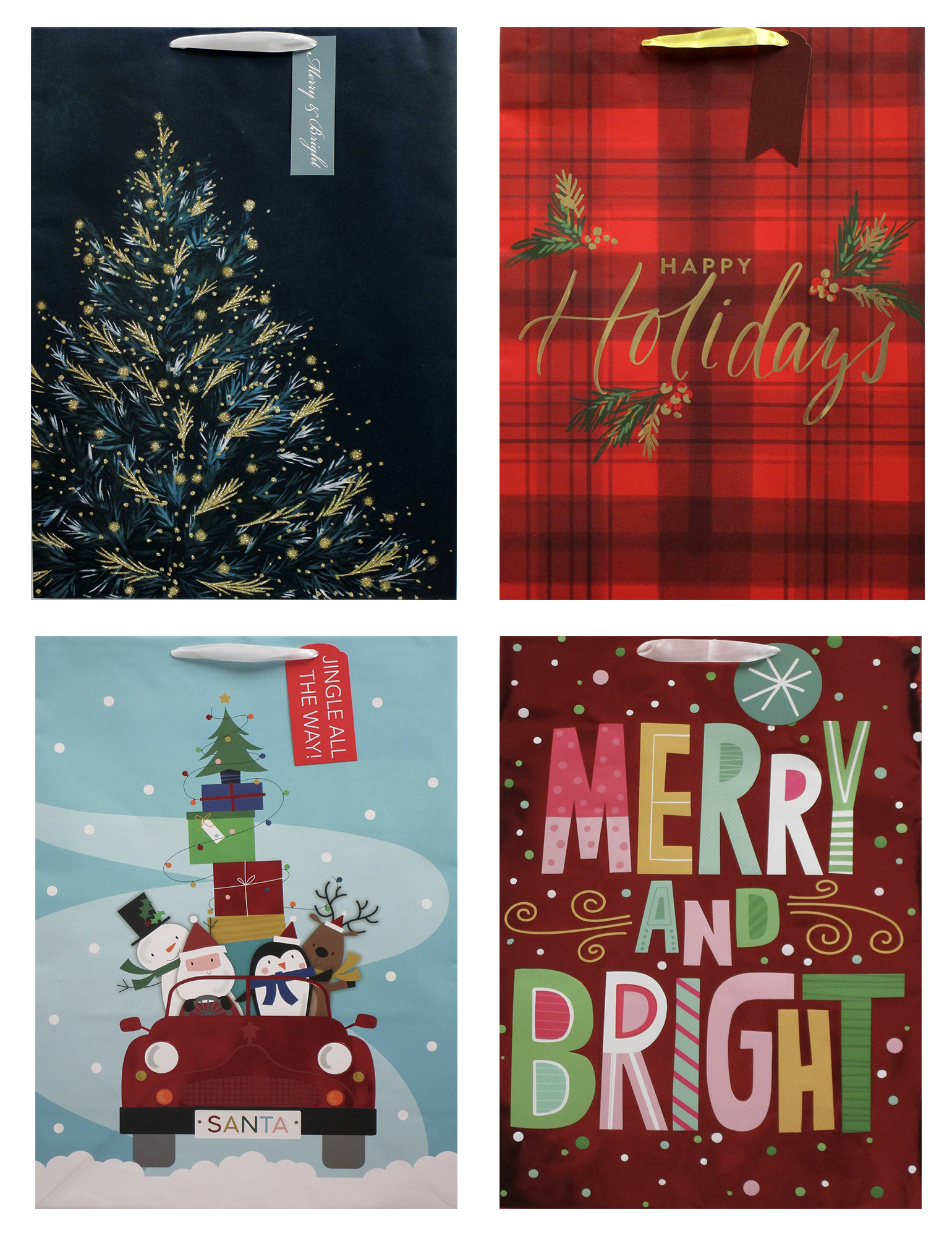 4 ASSORTED HOT STAMP OR GLITTER DESGNS: 21.5"H x 7.5"W x 15"L