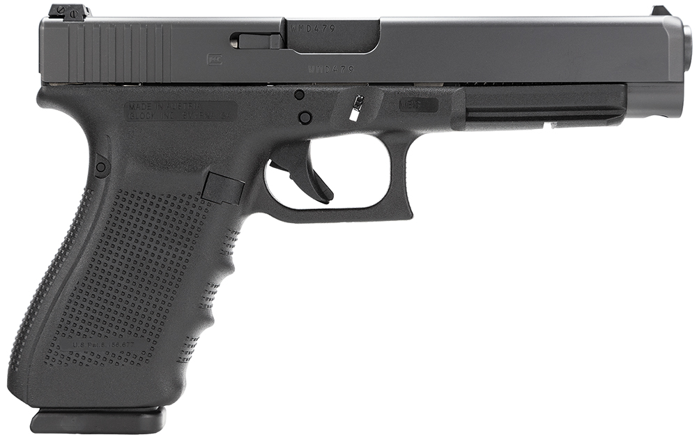 The Glock 41 Competition is designed to maximize sight radius while achieving perfect weight distribution and balance. It features Glock's Safe Action system which provides a consistent trigger pull from the first to the last round. The three automatic independently operating mechanical safeties are built into the fire control system of the pistol. All three safeties disengage sequentially as the trigger is pulled and automatically reengage when the trigger is released. The frame is made of polymer with hardened steel guides. It features an ideal grip angle and low weight. The slide stop lever and the magazine catch are easily operated with the shooting hand. The advanced surface treatment of the slide results in optimal hardness by considerably reducing wear and tear and it makes it corrosion resistant, even when operating in saltwater conditions. The matte surface minimizes light reflection. The barrel is mechanically locked and cold-hammer forged. It also has the same advanced surface treatment as the slide. Its extractor serves as a loaded chamber indicator to comply with the laws of certain states and its position may visually and physically indicate whether there is a cartridge in the chamber of the pistol.Specifications