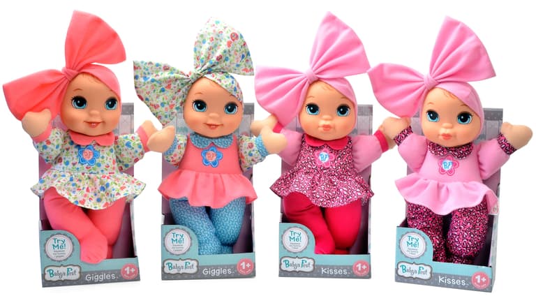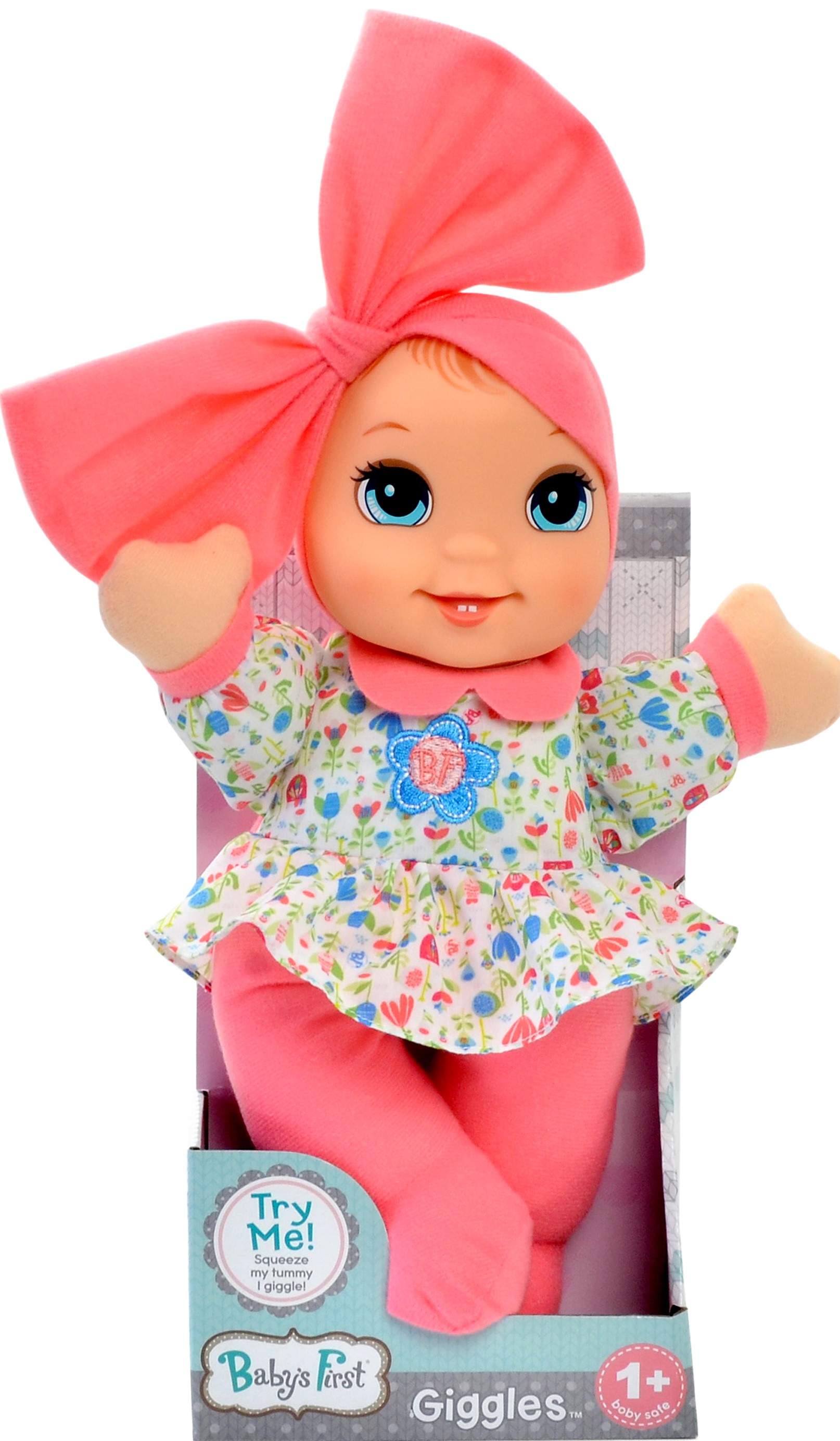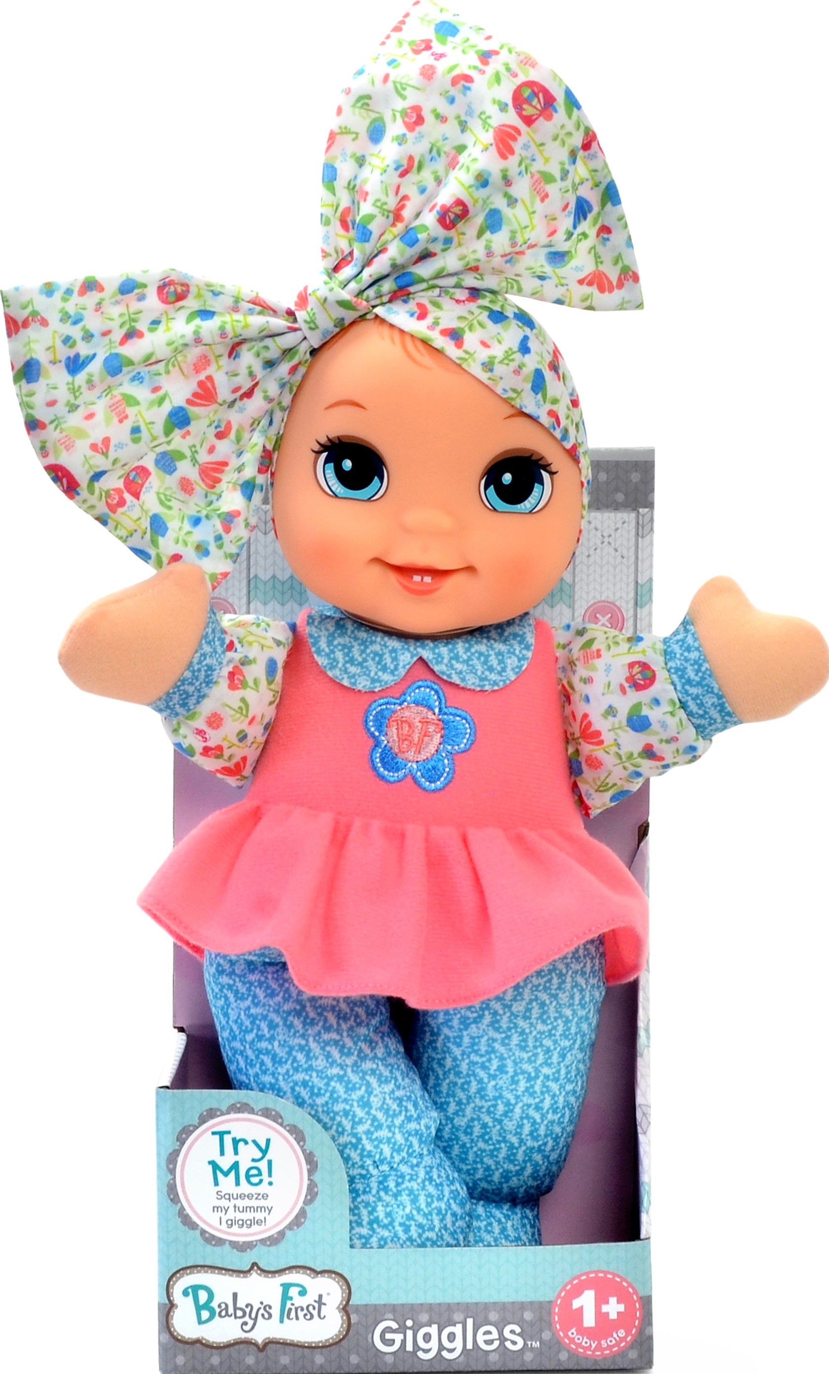 (We cannnot guarentee specific styles) Kisses - when you press her tummy, she give you a big kiss and says "I love you!" Giggles - when you press her tummy giggles like a real babySpecifications