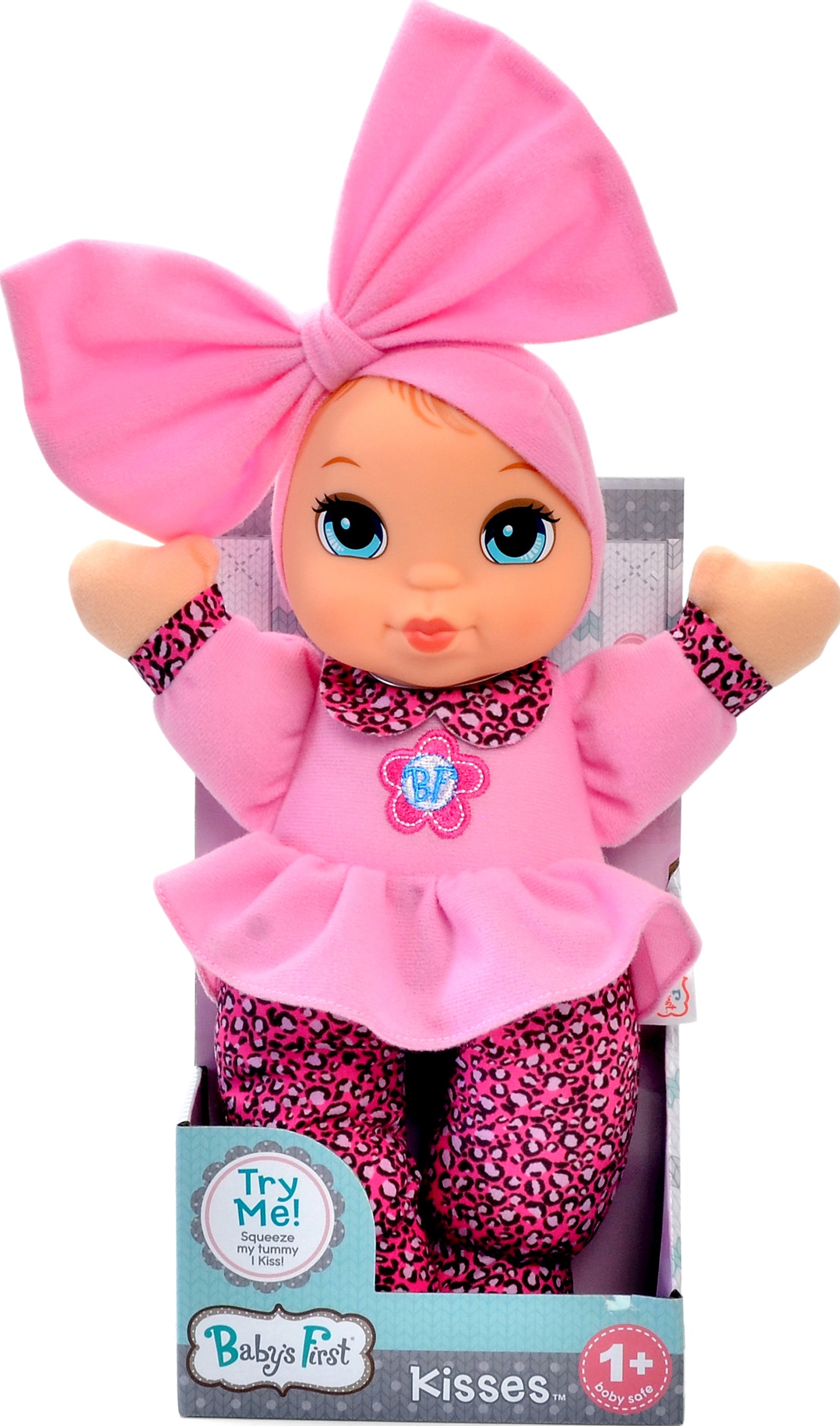 Kisses - when you press her tummy, she give you a big kiss and says "I love you!" Giggles - when you press her tummy giggles like a real baby