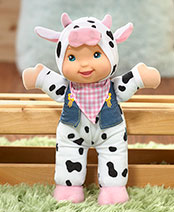 Age Graded for Children 1 Year and Older; Choose from Doll Dressed as Cow Pig or Chicken; Easy Care and Machine Washable; Great for Babies First Doll; Just Push on the Babys Belly and Hear Her Sing Her Rendition of Old McDonalds Farm; Mom-Approved Baby-Safe Doll; Soft Bodied Singing Animal Dolls