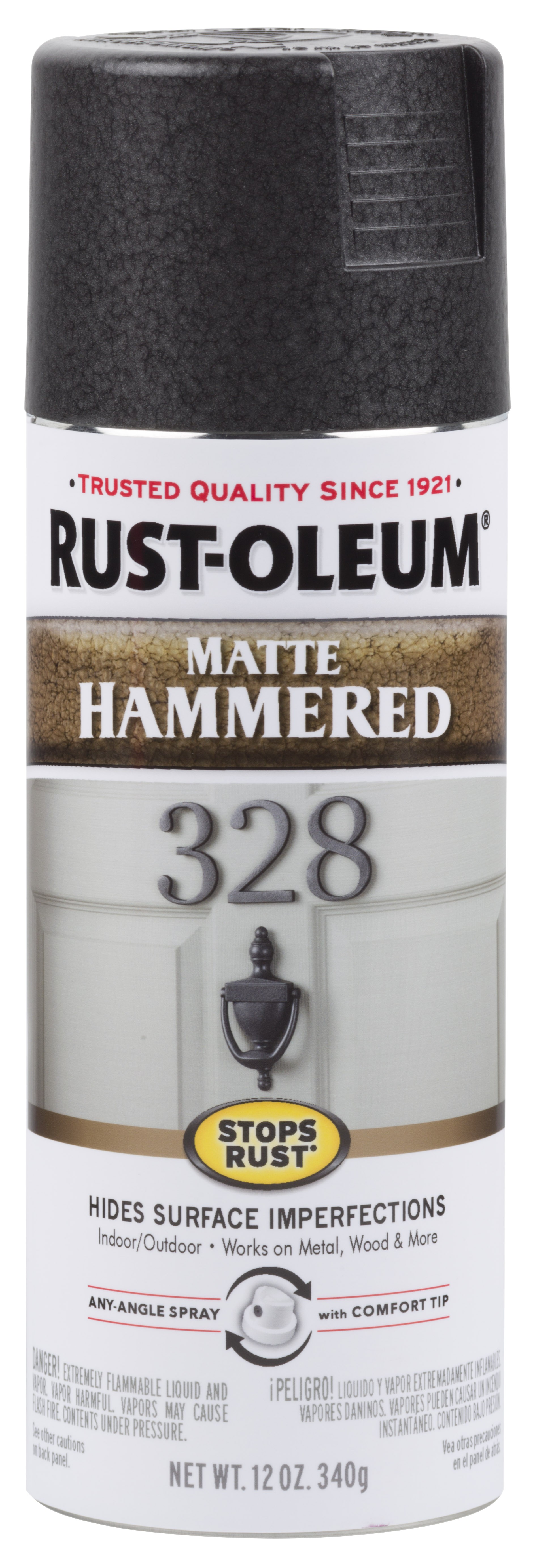 Rustoleum Stops Rust Hammered Spray Paint allows for a unique matte finish on dinged up surfaces without the use of sanding or priming. The durable formula applies directly over rust and provides excellent resistance to the elements for a long-lasting finish. With excellent hiding capabilities the paint can be used on a variety of indoor and outdoor projects to hide flaws and imperfections and leave a distinctive hammered look.Specifications