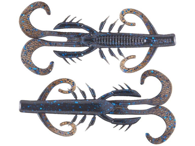 Back ribs help hide the hook point and maximize usage; Forward-facing legs provide subtle, secondary action with the slightest movement; Primary curl tail appendages provide enticing fluttering action at the slowest speeds; Smart Injection Technology combines custom combinations of color, flake, salt and scent that are added precisely where needed for the perfect presentation