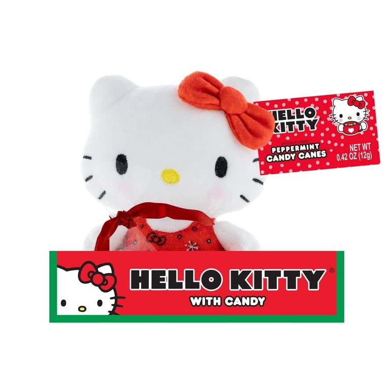 EMBRACE THE MAGIC OF HELLO KITTY PLUSH WITH CANDY. THIS SOFT AND HUGGABLE PLUSH IS A PERFECT EMBODIMENT OF THE CHARACTER'S CHARM. IT COMES WITH AN ADDED TOUCH OF SWEETNESS, AS TWO CANDY CANES ARE INCLUDED TO DELIGHT HELLO KITTY FANS OF ALL AGES. WHETHER AS A GIFT OR A STOCKING STUFFER, THIS PLUSH BRINGS JOY AND COMFORT TO YOUR HELLO KITTY EXPERIENCE. ELEVATE YOUR GIFTING GAME WITH A COMBINATION OF CUTENESS AND FLAVOR THAT CAPTURES THE ESSENCE OF THE BELOVED CHARACTER.Specifications