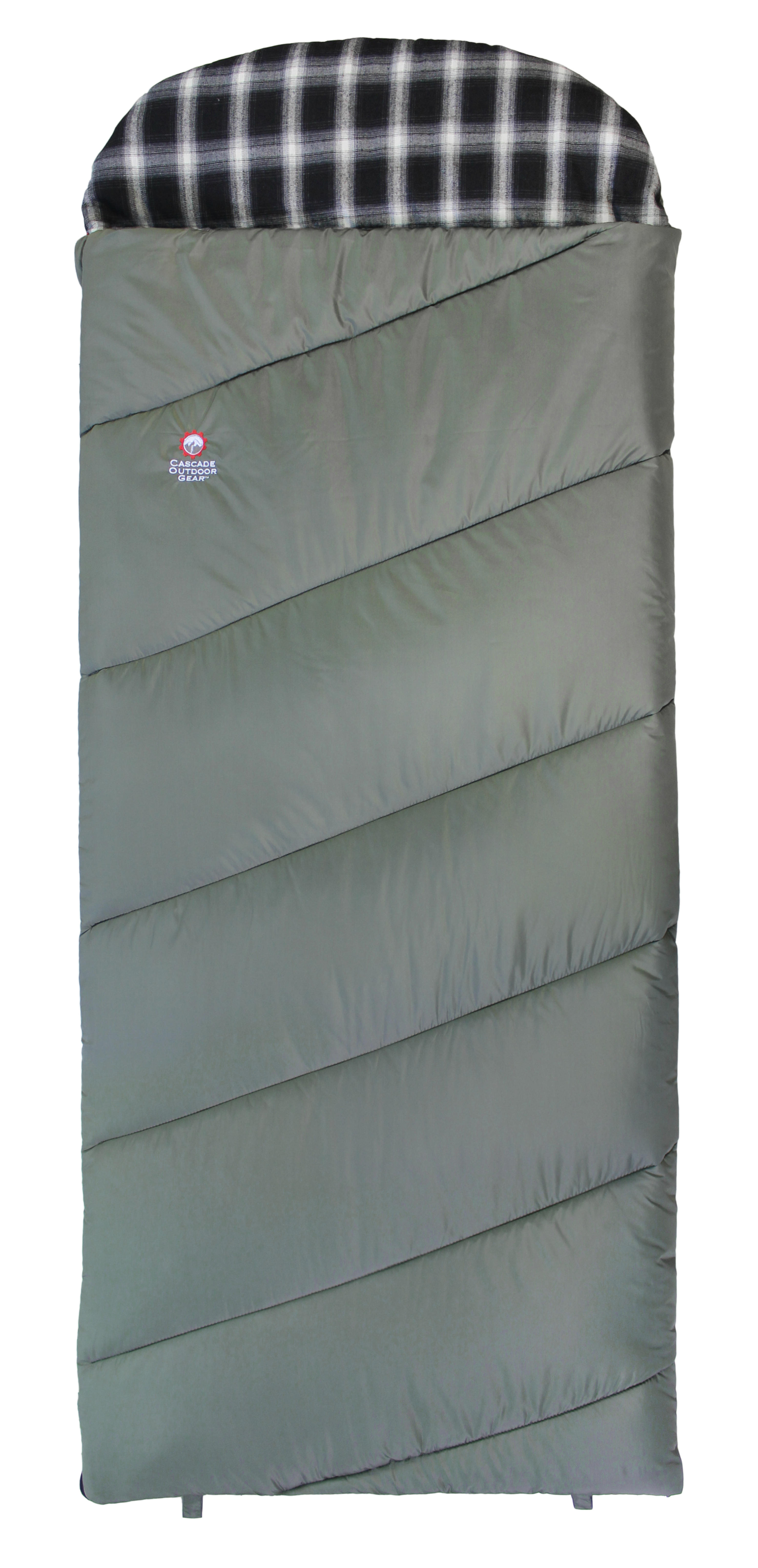 The Hemlock Oversized 86x36" Sleeping Bag is constructed with 100% Polyester MicroFiber Fill and a Ripstop Outer Shell. The soft flannel cotton liner and padded hood provides extra comfort and warmth. Built with offset quilted construction prevents cold spots and the full length, snag resistant zipper, Internal stash pocket to store small, quick access items are all additional features to the Hemlock sleeping bag. Comes with a Compression Carry Bag and is rated to 20 degree F.Specifications
