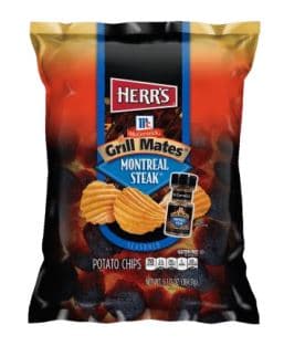 When two legendary flavor makers join forces, the result is one epic snacking experience for you. So when we set out to capture the authentic Montreal Steak flavor, we turned to the masters at Grill Mates. The bold combination of peppers and garlic on fire-grilled steak is perfectly delivered on our classic ripple chip. If you love the savory, unique taste of Grill Mates Montreal Steak then you will love our Herr's Montreal Steak seasoned potato chips. Forever good.Specifications