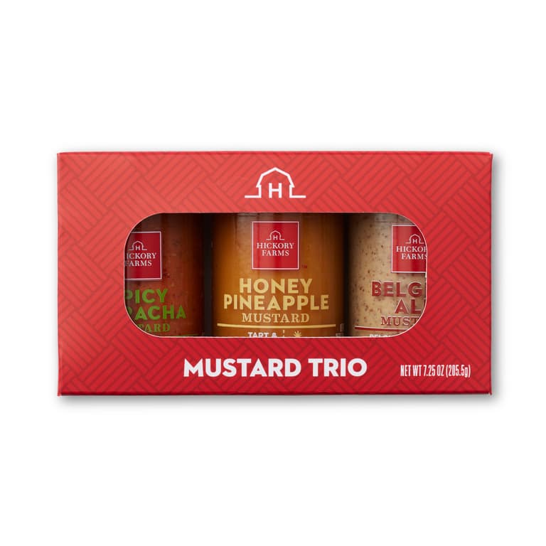 IF YOU HAVENT TRIED OUR COLLECTION OF ELEVATED CONDIMENTS YOUR SURE TO FIND YOUR NEW FAVORITE.WHEN YOU DO. THIS MUSTARD TRIO INCLUDES SPICY SIRACHA HONEY PINEAPPLE AND BELGIAN ALE IN 2.25 OZ BOTTLES. THIS IS THE PERFECT GIFT FOR ANY FOODIE IN YOUR LIFE.Specifications