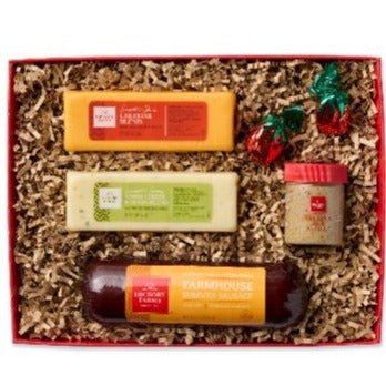 SMOOTH & SAVORY FLAVORS ARE A GREAT GIFT FOR ANYONE ON YOUR LIST.THIS HICKORY FARMS HOLIDAY CHARCUTERIE GIFT BOX INCLUDES FARMHOUSE SUMMER SAUSAGE SMOOTH & SHARP CHEDDAR BLEND THREE CHEESE & ONION BLEND BELGIAN ALE MUSTARD AND STRAWBERRY BON BONS.Specifications