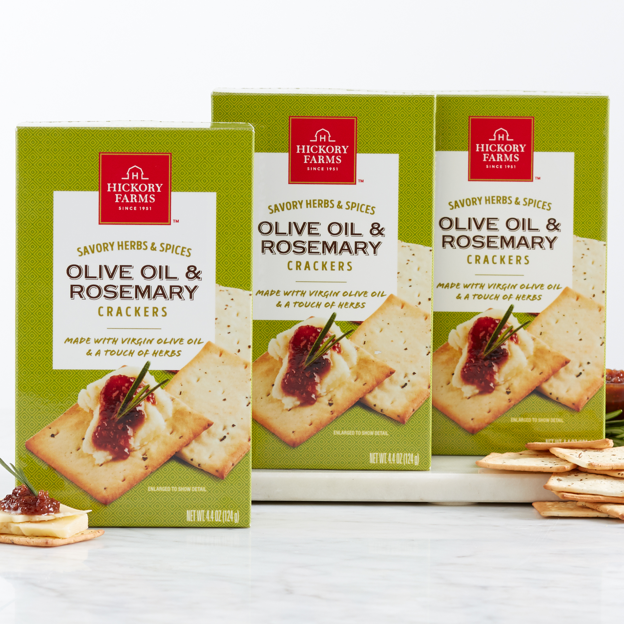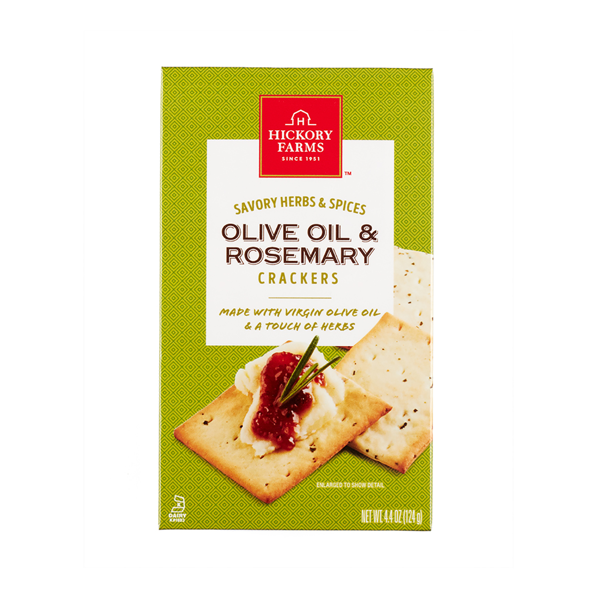 HICKORY FARMS CRACKERS ARE MADE WITH VIRGIN OLIVE OIL A TOUCH OF BASIL AND SAVORY HERBS AND SPICES. THESE CRACKERS ARE A FLAVORFUL AND DELICIOUS ON THEIR OWN BUT MADE TO COMPLIMENT HICKORY FARMS SUMMER SAUSAGE AND CHEESES.Specifications
