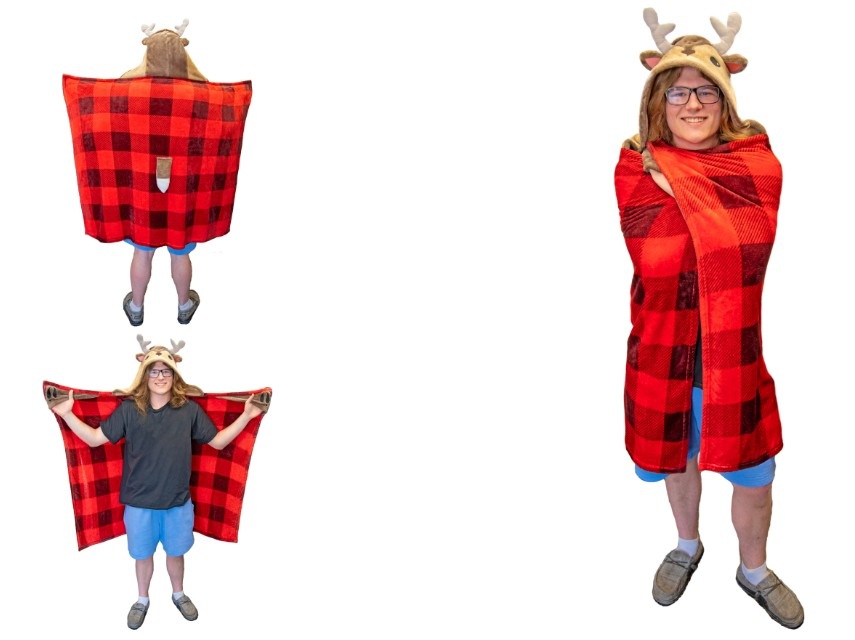 fun magical character with embroidery and additional details; hand pockets to wrap up all snuggly and warm; hooded cozy blanket; Soft plush blanket
