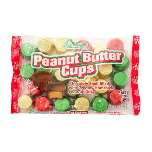 Our delicious Palmer Peanut Butter Cups in a 10 oz bag with festive, holiday colored foils.Specifications