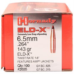The ELD-X (Extremely Low Drag - eXpanding) bullet is a technologically advanced, match accurate, ALL-RANGE hunting bullet featuring highest-in-class ballistic coefficients and consistent, controlled expansion at ALL practical hunting distances.Specifications
